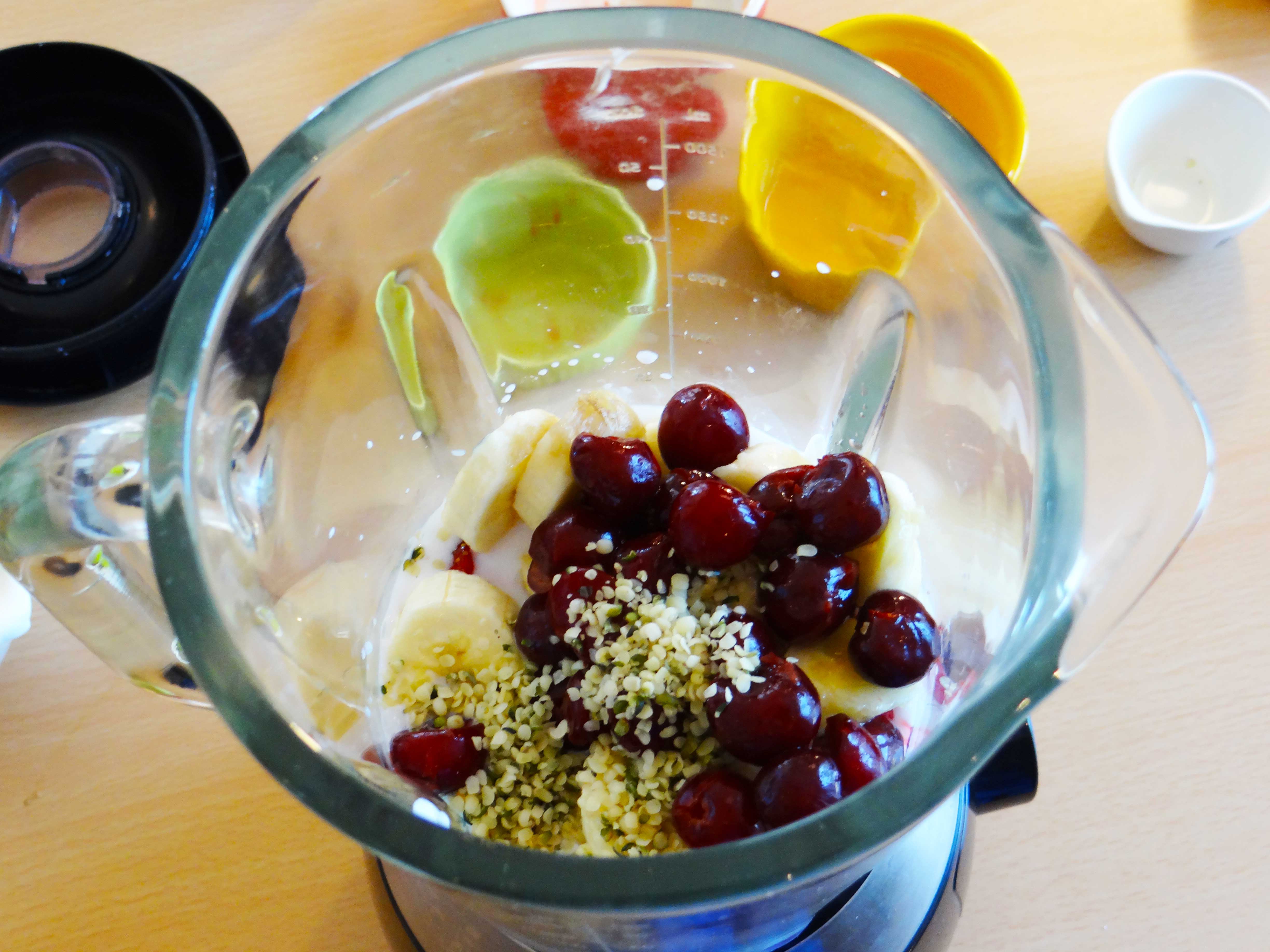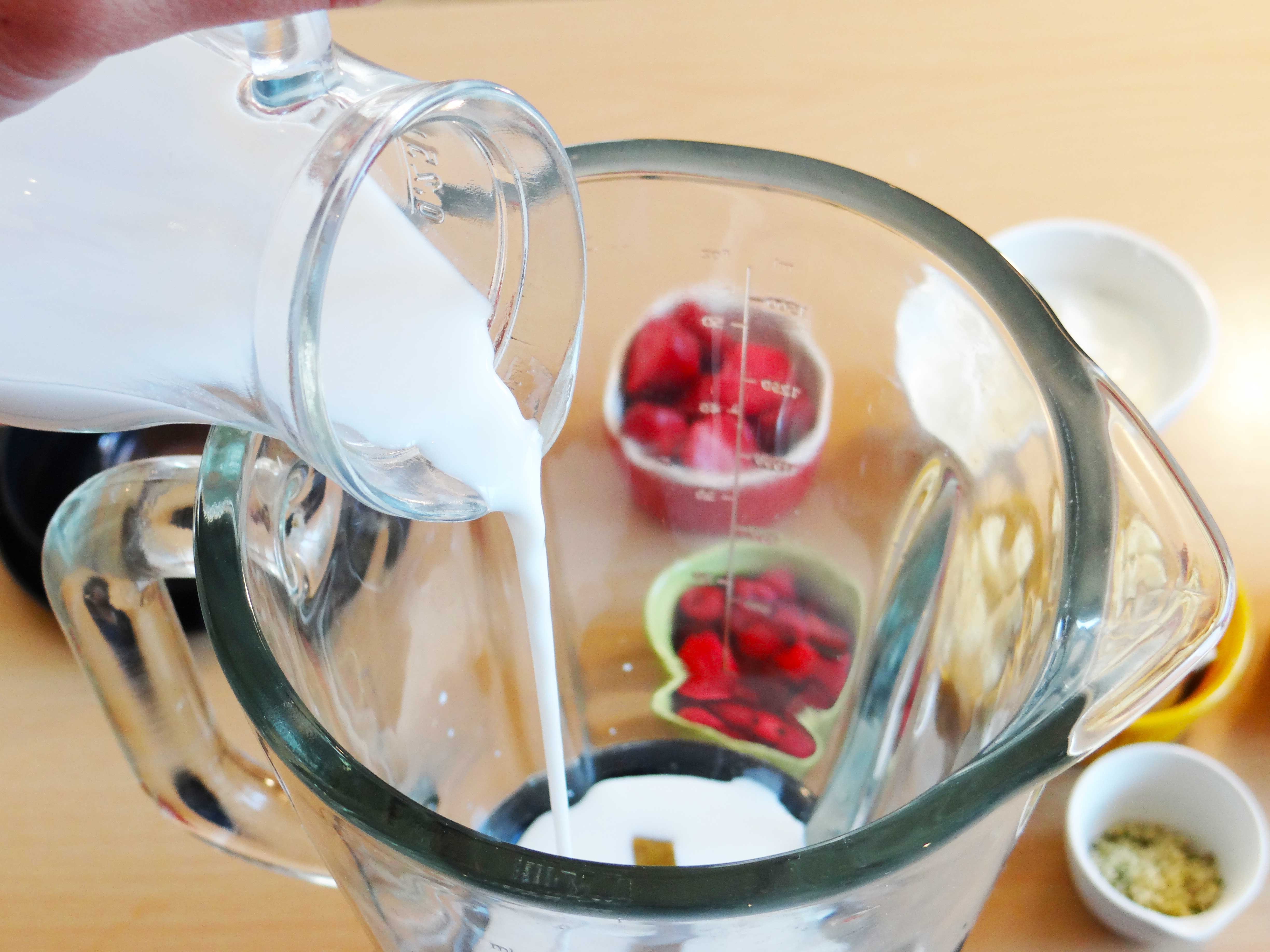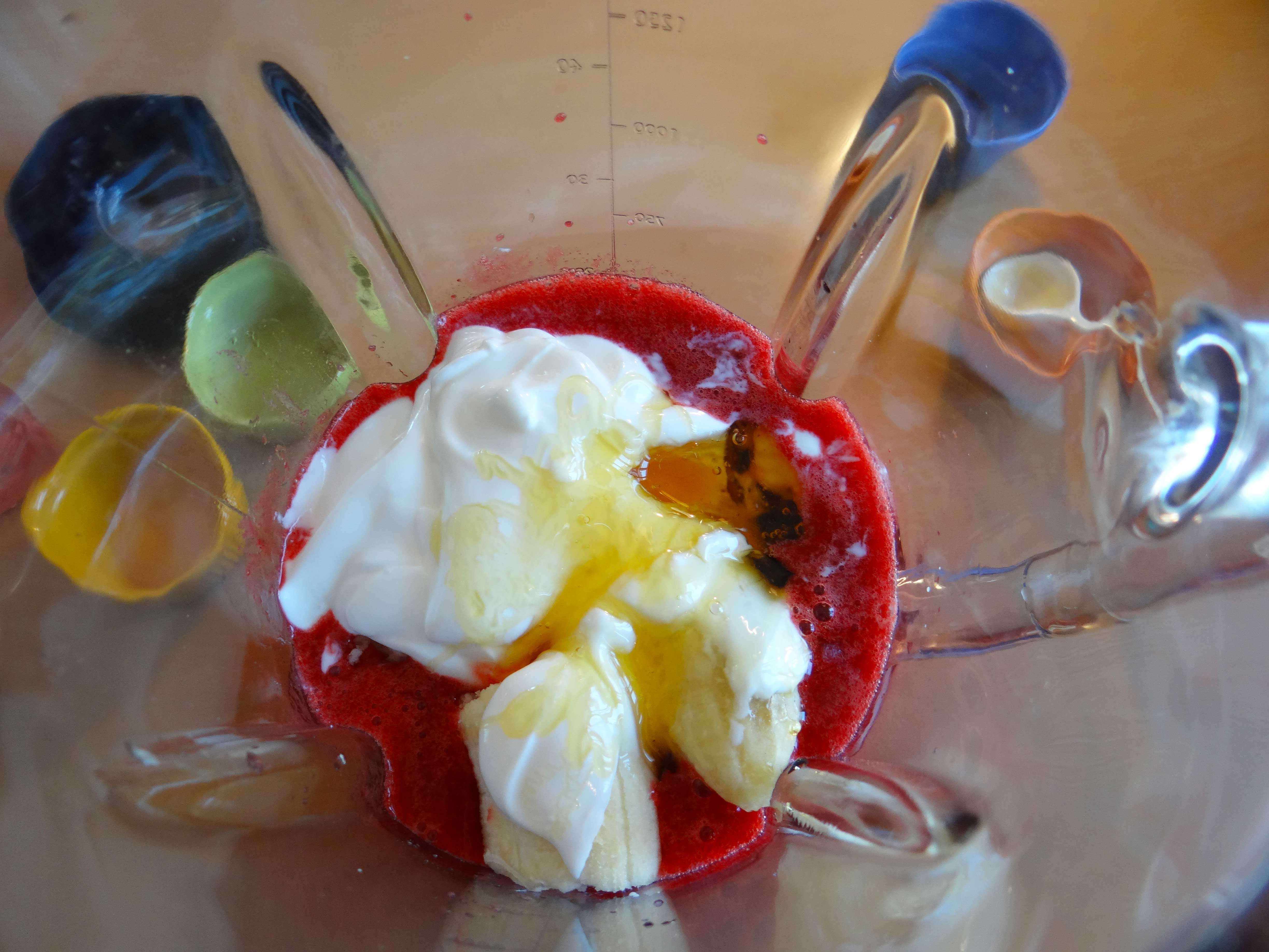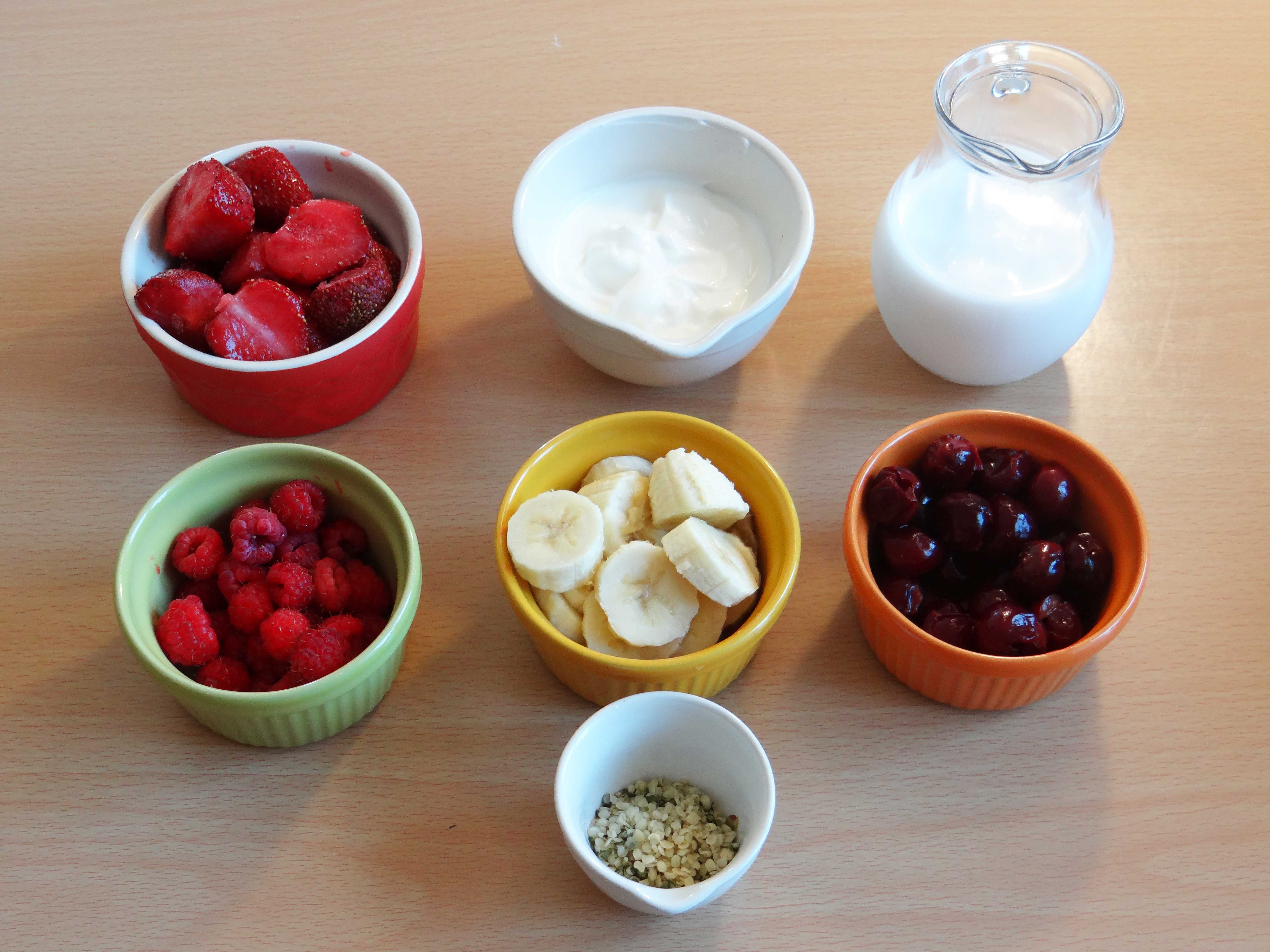 1. Intr-un blender punem laptele si iaurtul dupa care adaugam fructele.
