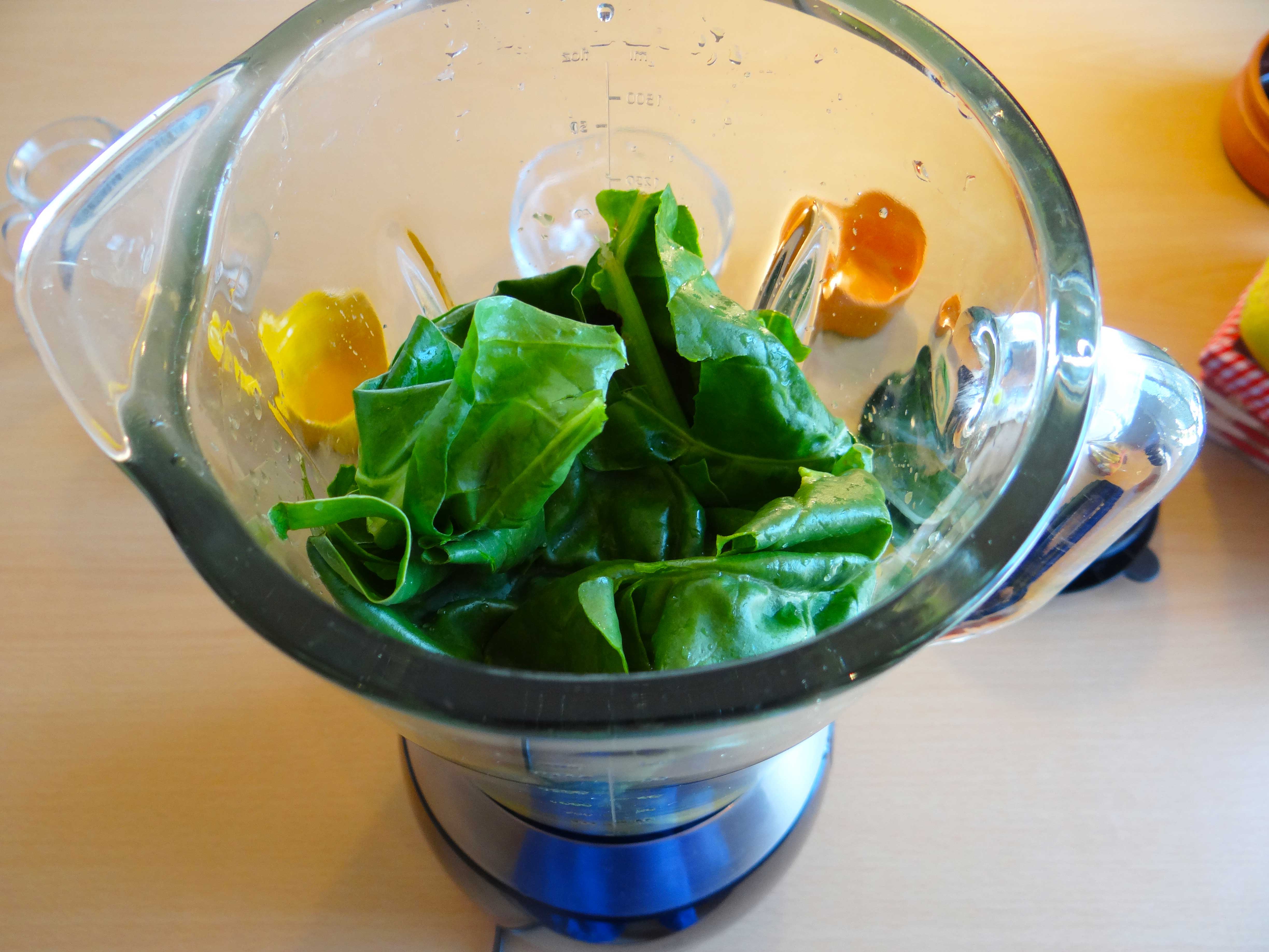 1. Punem sucul de portocale in blender dupa care adaugam restul ingredientelor. Mixam bine.