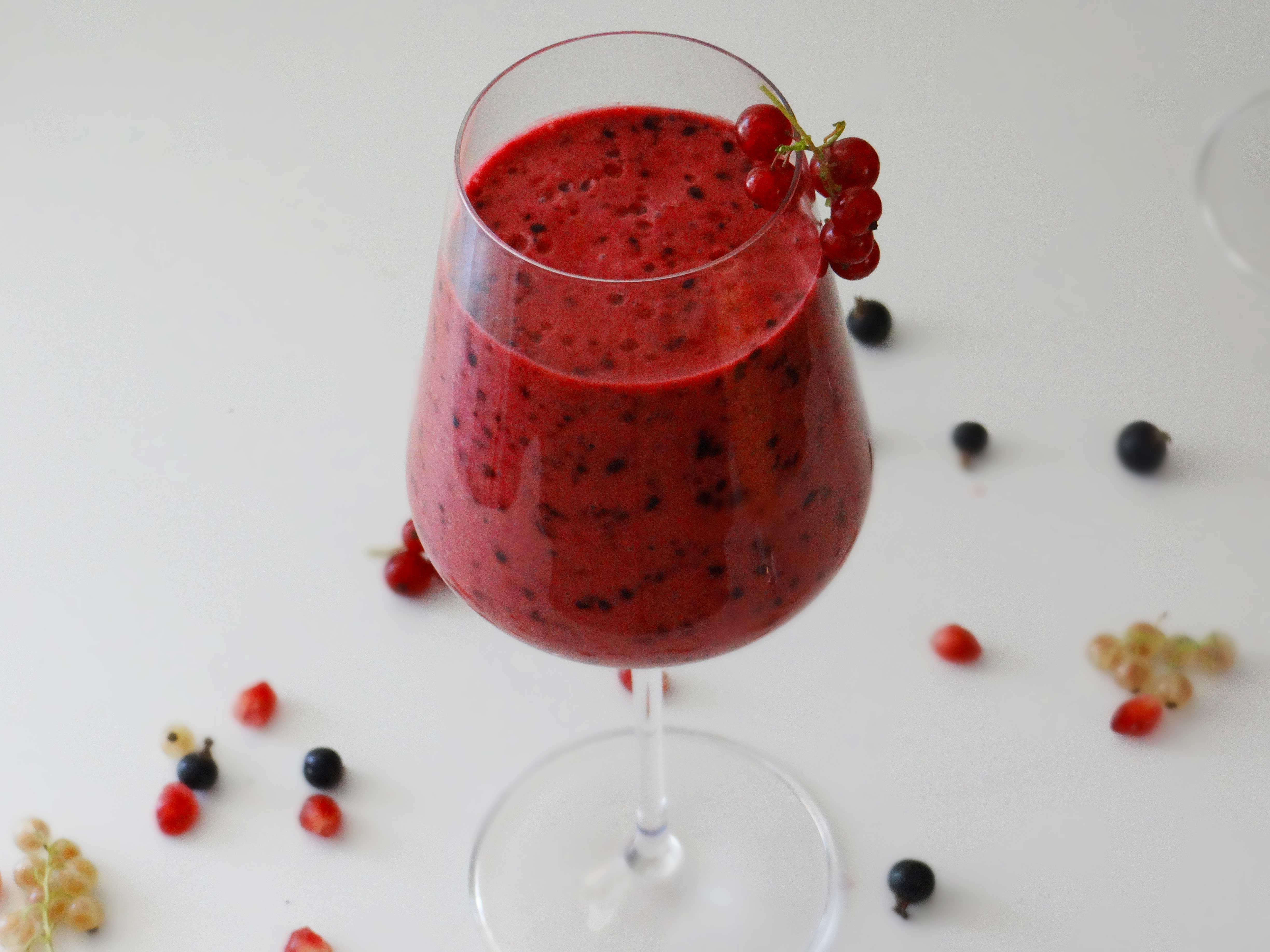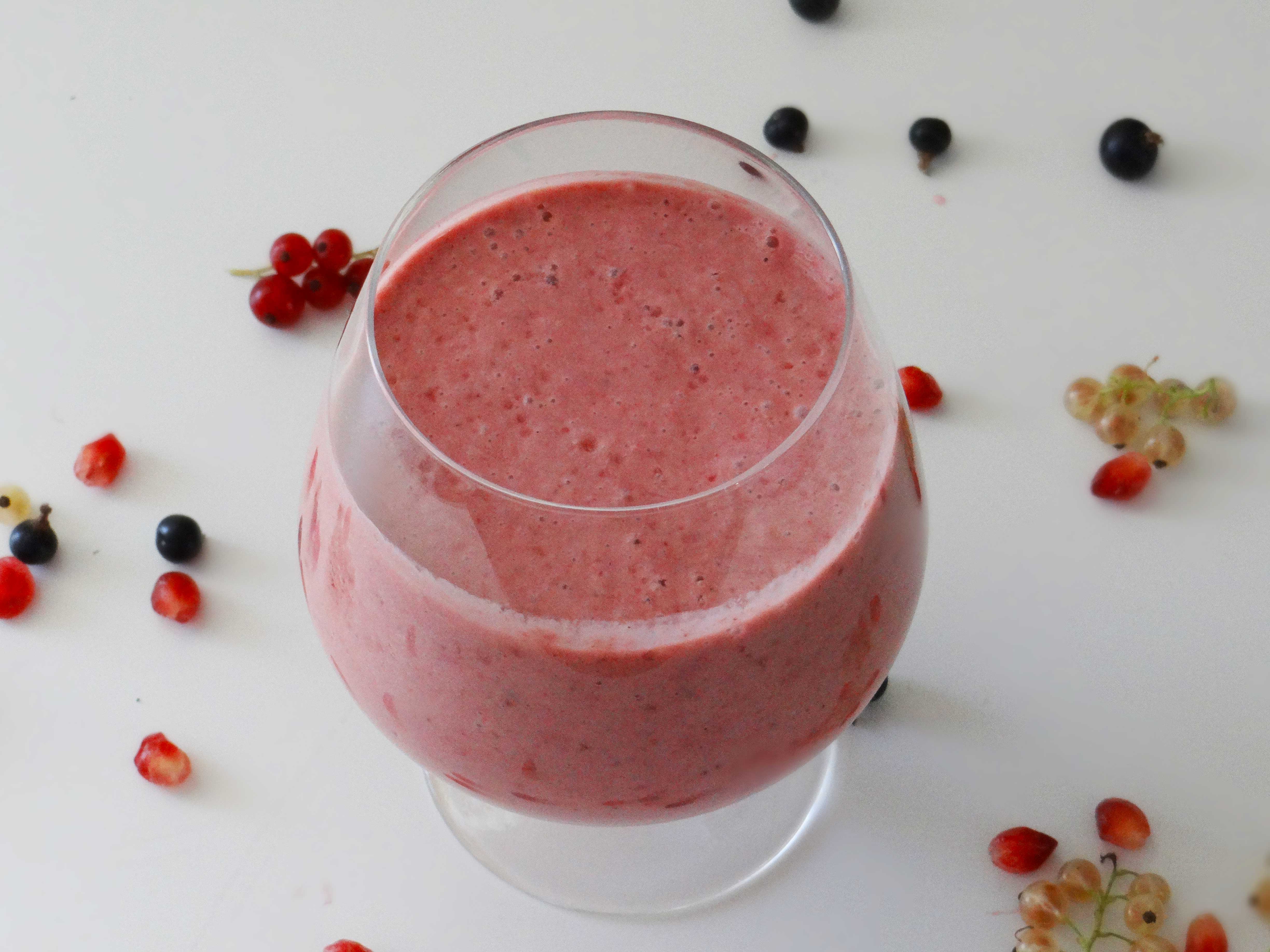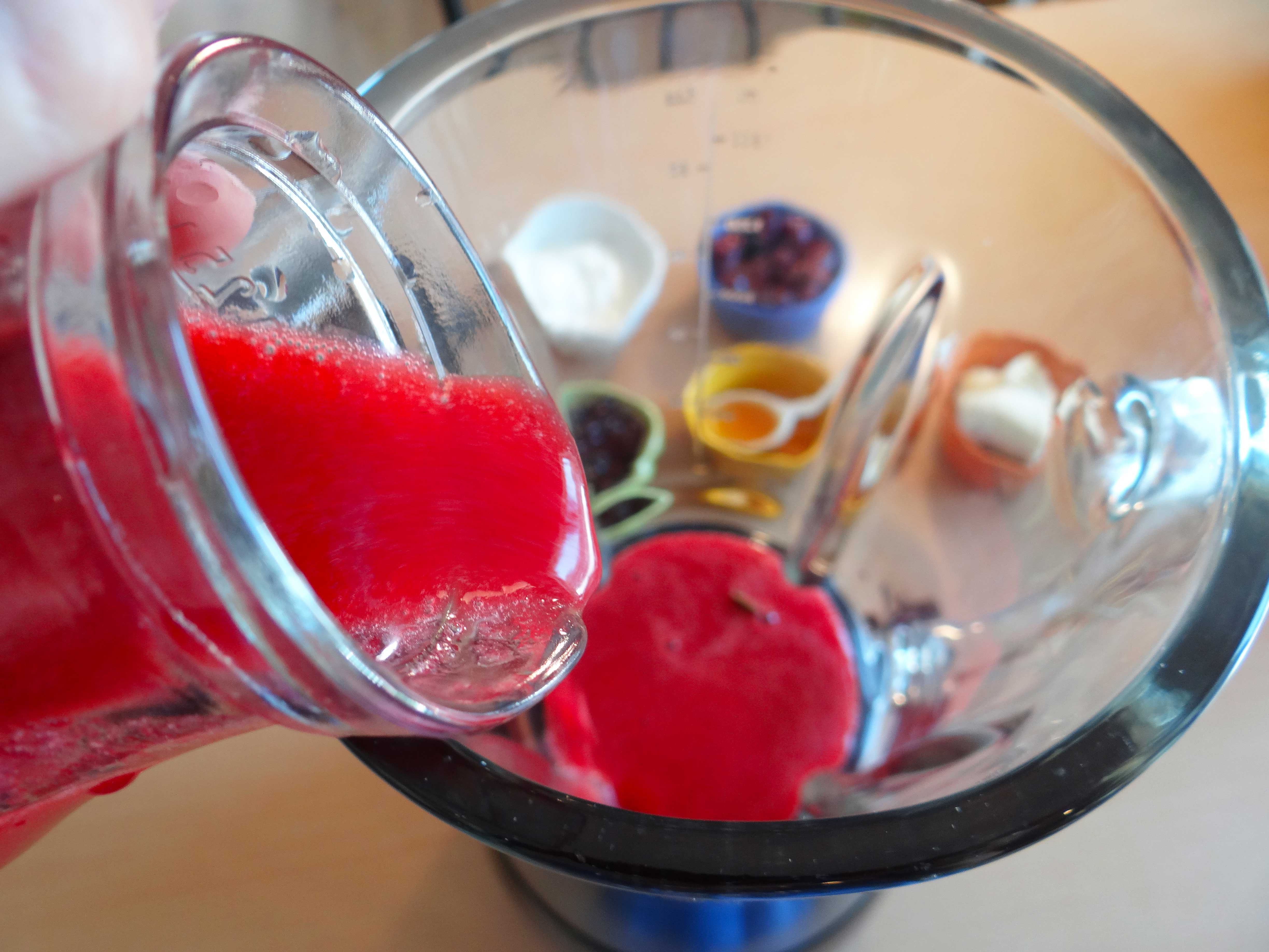 1. Punem sucul de rodii si capsune intr-un blender dupa care adaugam restul ingredientelor.