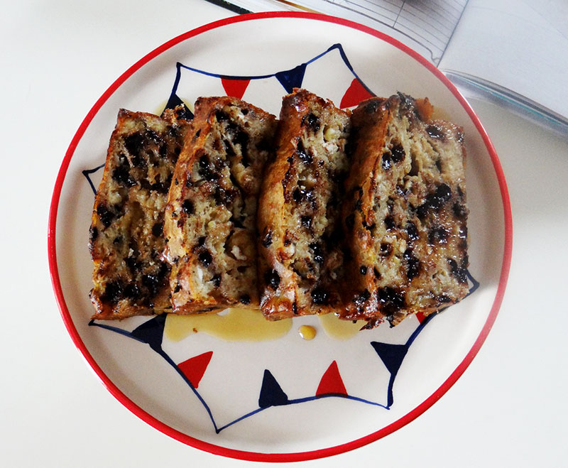 Vă voi prezenta o rețetă de banana bread umedă și delicioasă. Este ușor de făcut, nu aveți nevoie nici măcar de mixer. Perfectă pentru micul dejun, poate fi servită cu miere sau sirop de arțar. Și foarte important, nu conține zahăr.
