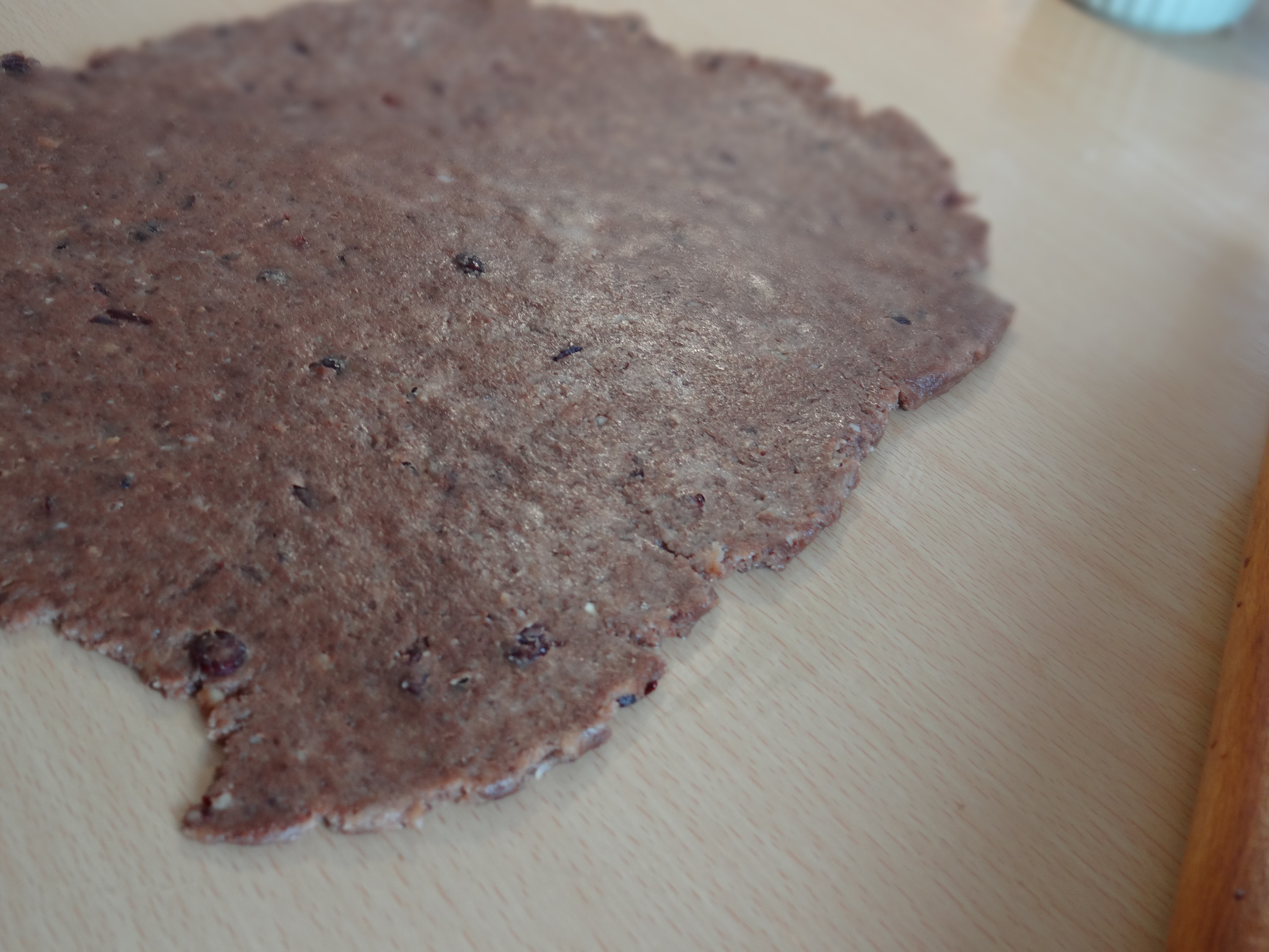 10. Scoatem aluatul din frigider și îl lăsăm la temperatura camerei 5 minute pentru a se încălzi puțin astfel încat să putem lucra mai ușor cu el. Apoi împărțim aluatul în doua și întindem o jumătate din el pe masa de lucru ușor înfăinată.