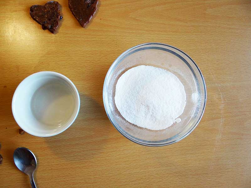 Acum facem glazura de zahăr din 100g zahar pudră și 2 lingurițe de apă. Glazura de zahar sau icing sugar trebuie să aibă o consistență cremoasă asemanatoare smântănii.
