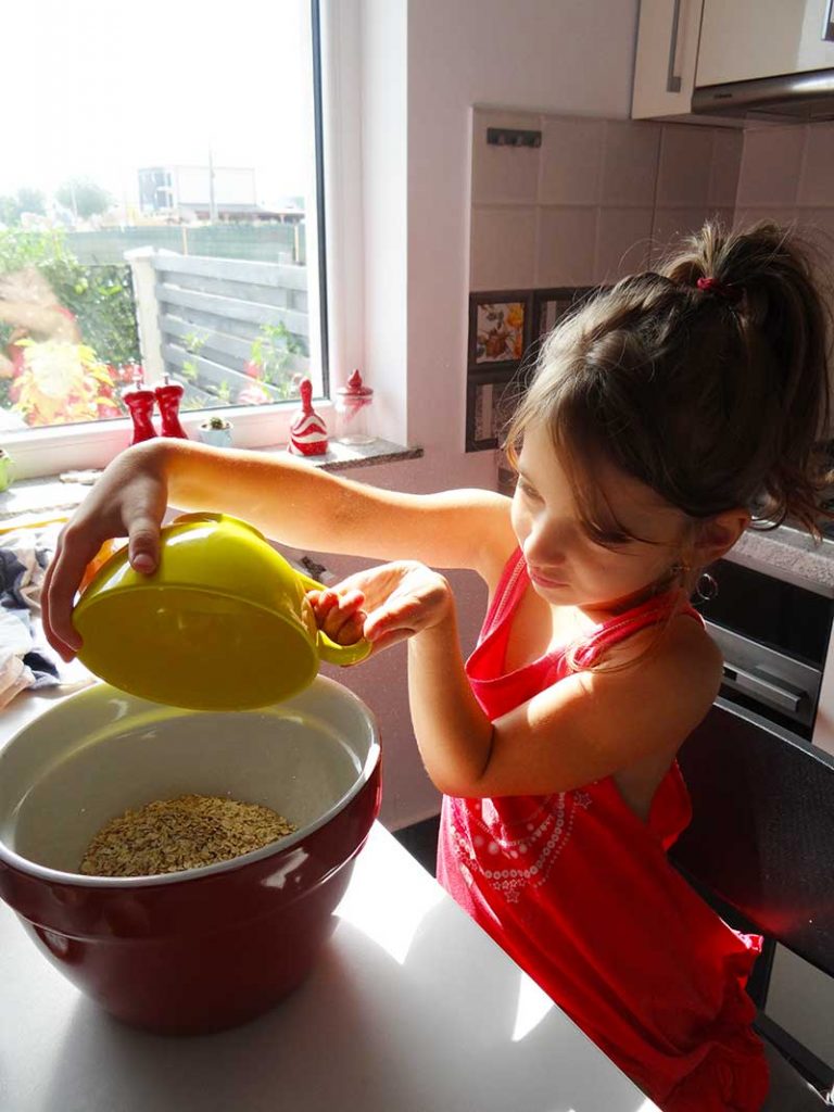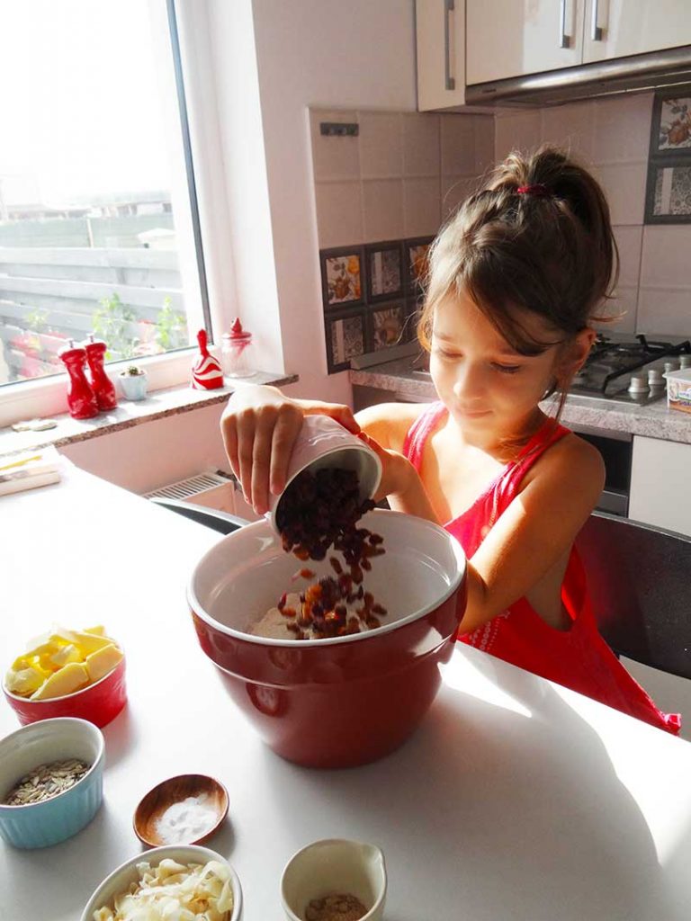 Acești biscuiți sunt ușor de făcut și sănătoși. Fulgii de ovăz au un conținut ridicat de fibre ceea ce înseamnă că îți dau senzația de sațietate o periodă mai mare de timp. În plus ajută la scăderea colesterolului rău, hidratează pielea, susțin sistemul imunitar, protejează sistemul cardio vascular, reduc riscul de diabet de tip 2, reglează nivelul tensiunii arteriale, previn constipația, reglează glicemia.