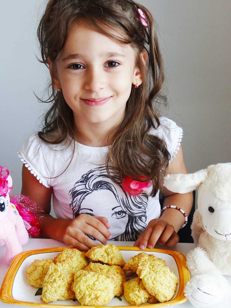3. Cu ajutorul a două linguri punem mici grămăjoare de aluat într-o tava tapetată cu hârtie de copt.
