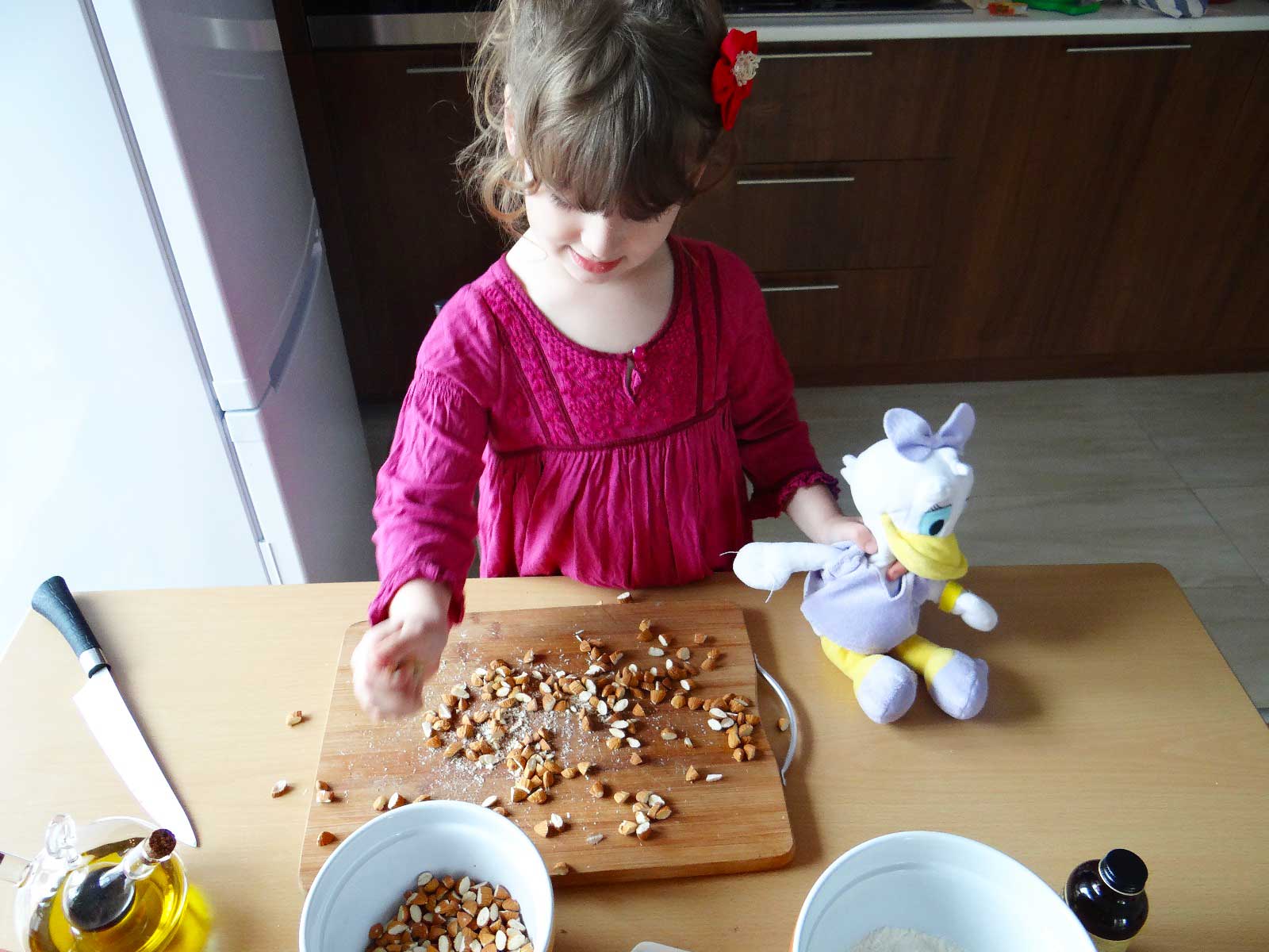 2. Taiem migdalele in bucati mici.