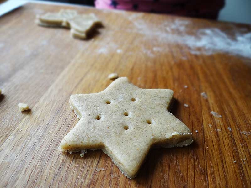 Cu ajutorul unui băț pentru frigărui înțepăm biscuiții din loc în loc.