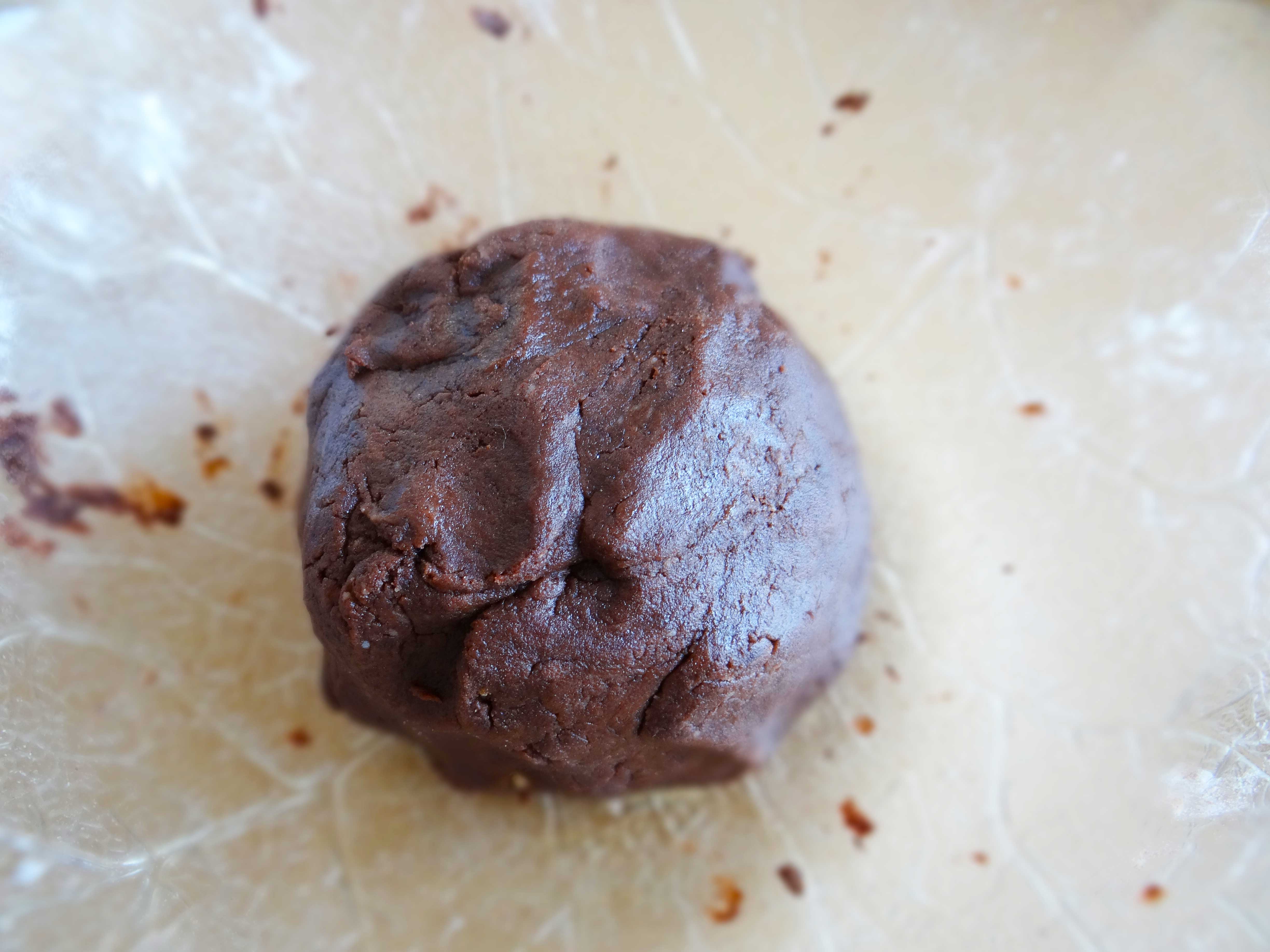 1. Punem făina într-un bol încăpător și peste ea adăugăm untul, cacaoa și sarea. Cu ajutorul degetelor încorporăm untul în făină până când aluatul capată aspectul unor firimituri.