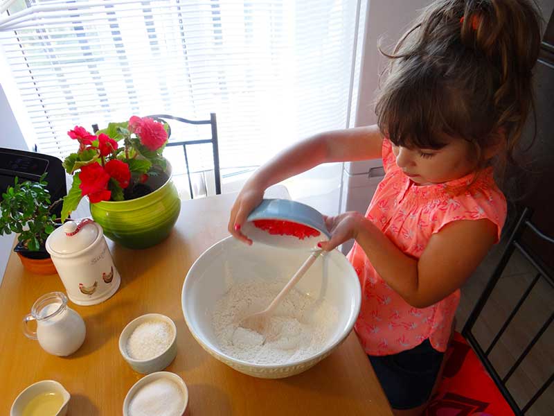3. Într-un bol încăpător cernem făina, praful de copt și sarea.