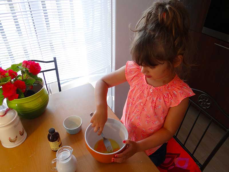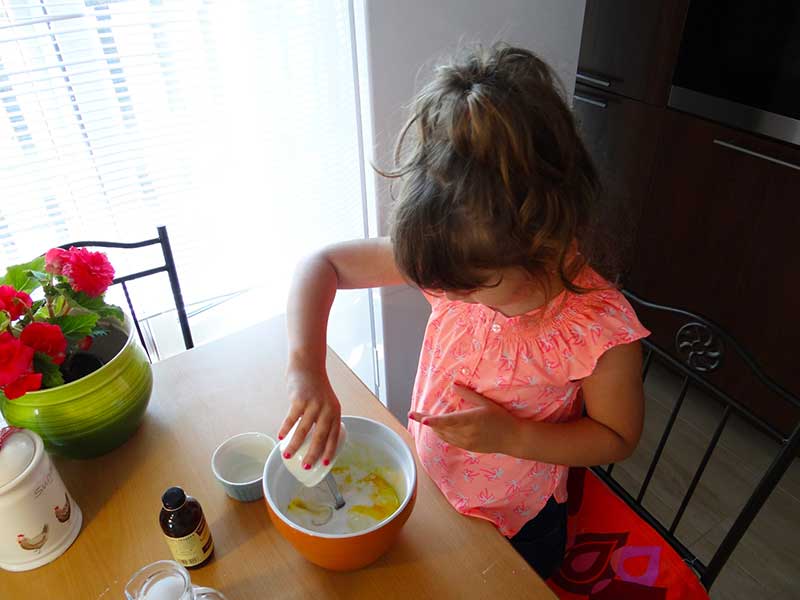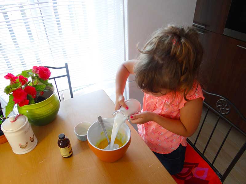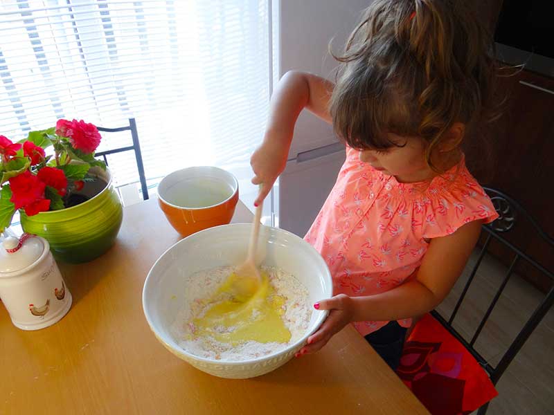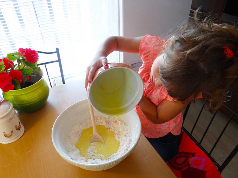 7. Amestecăm ușor cât să încorporăm ingredientele. Nu amestecați prea mult pentru a nu activa glutenul.
