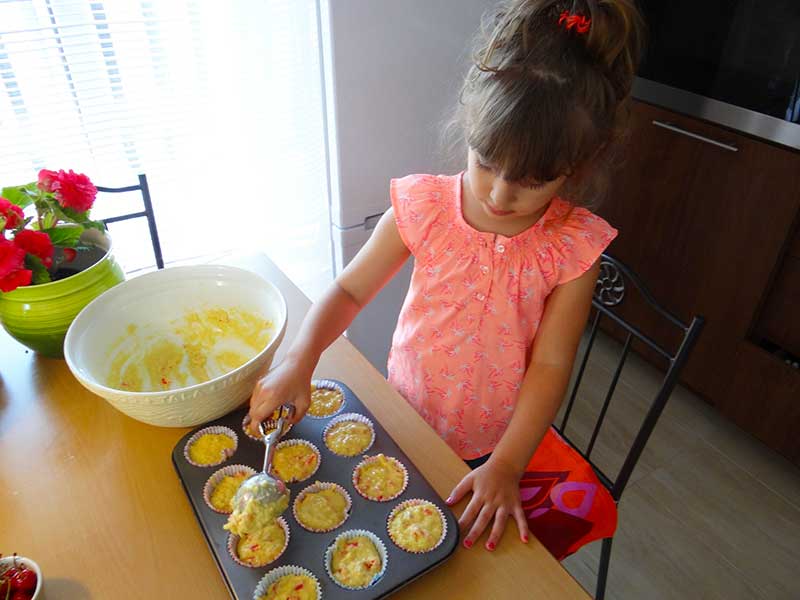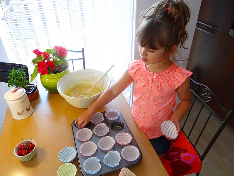 8. Așezăm hârtiile pentru briose într-o tavă specială pentru brioșe.