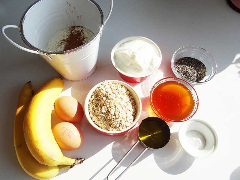 3. În alt bol mixăm ouăle cu mierea, iaurtul, uleiul de măsline și vanilia.