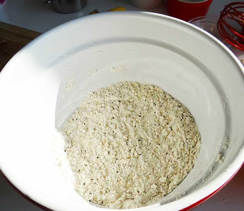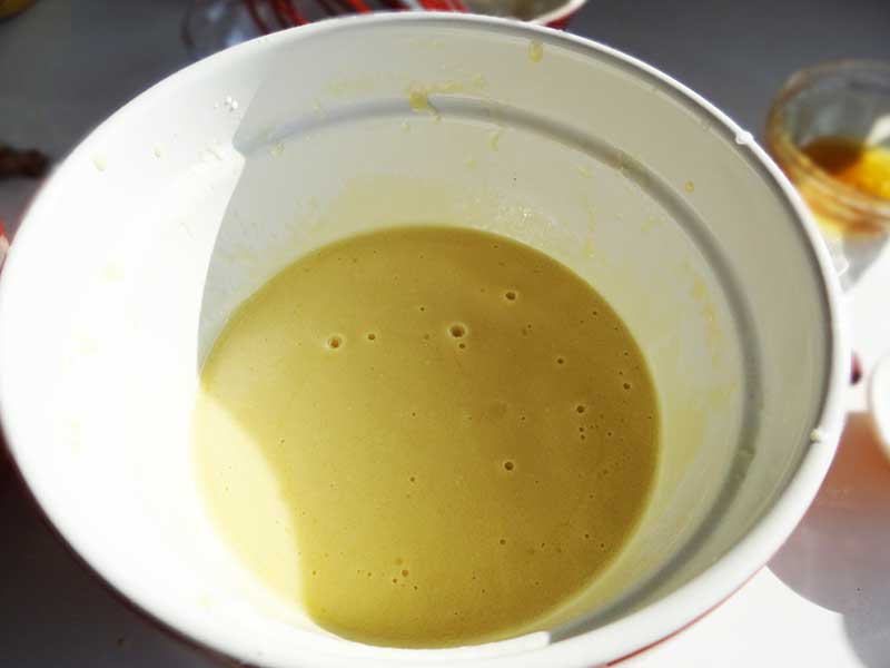 4. Adăugăm amestecul umed peste cel uscat și omogenizăm.