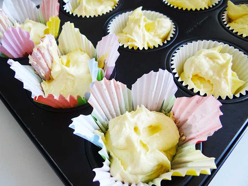5. Repartizăm uniform aluatul într-o formă pentru brioșe. Aceste ingrediente ajung pentru 10 brioșe mari.