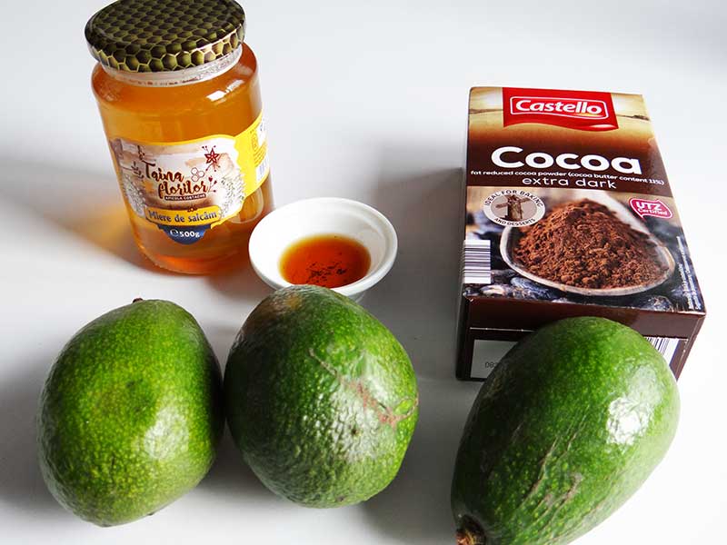 Pentru a prepara mouss-ul de avocado tot ce trebuie să facem este să mixăm cu un blender de mână pulpa de avocado împreună cu mierea, vanilia și cacaoa.