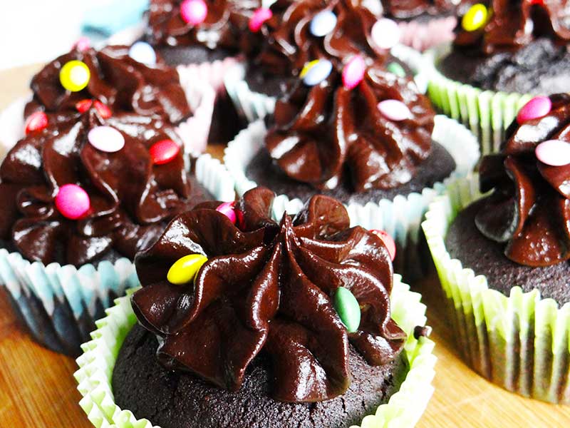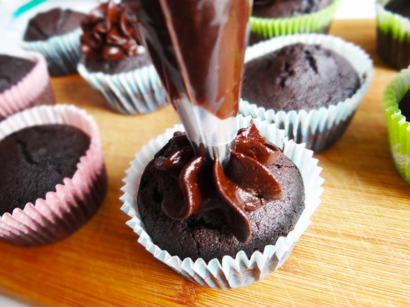 Lăsăm brioșele la răcit după care le ornăm cu mouss-ul de avocado.