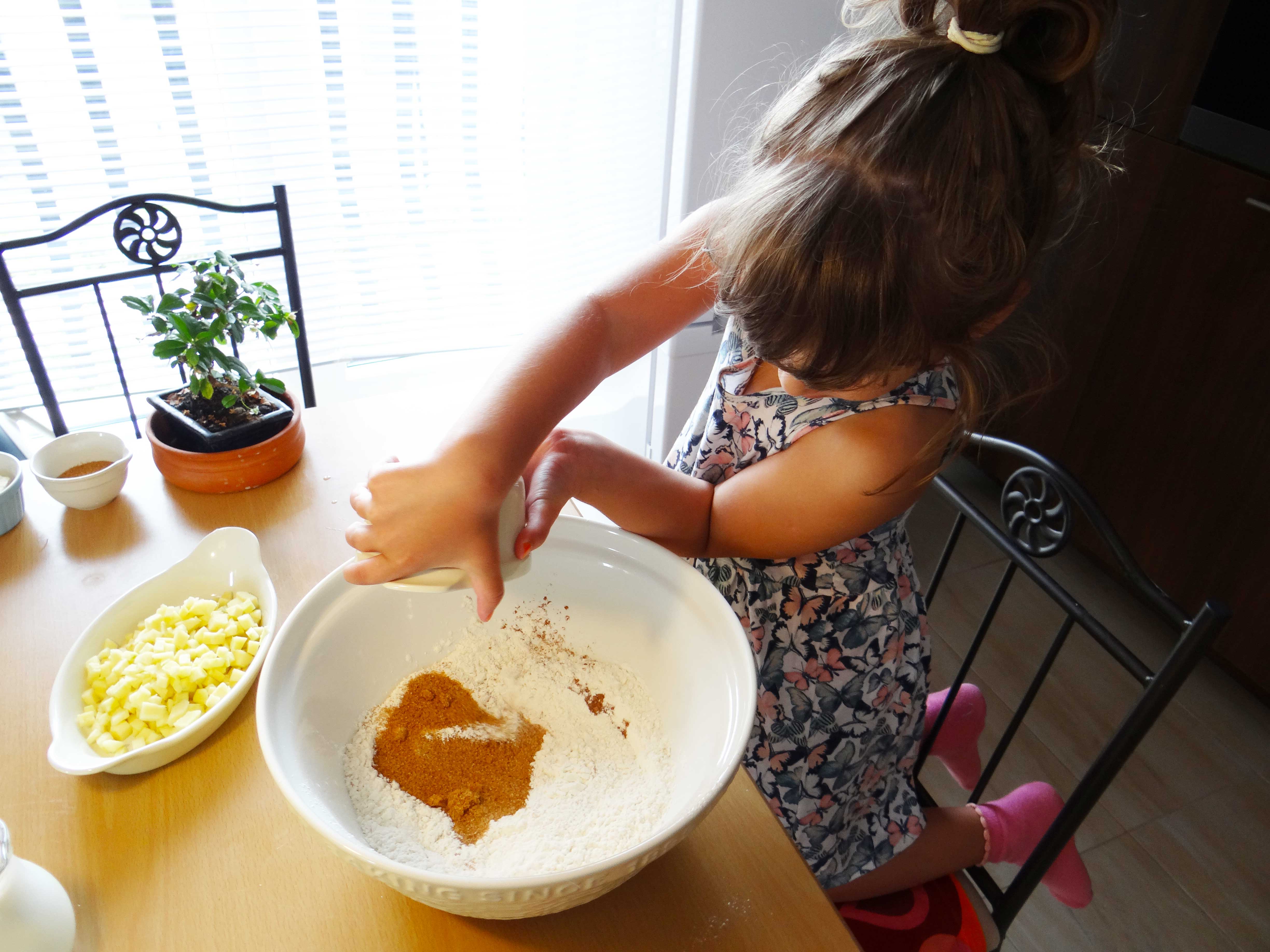 4. Pentru prepararea aluatului trebuie sa cernem faina impreuna cu praful de copt, scortisoara si sarea.