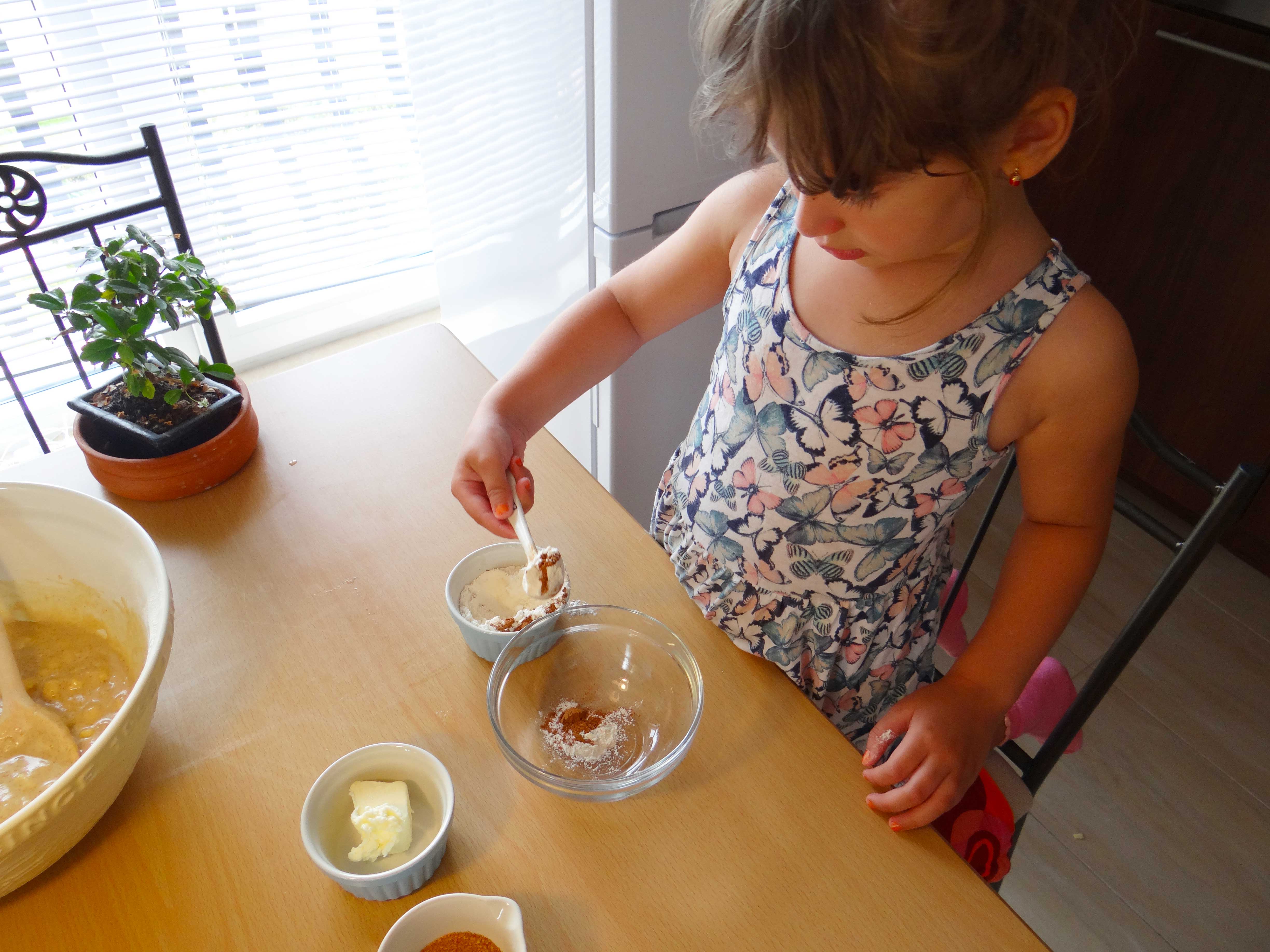 8. Apoi amestecam usor cat sa incorporam ingredientele. Atentie!!! Nu amestecati mai mult decat este necesar. Glutenul se poate activa si astfel briosele noastre nu vor mai fi pufoase.