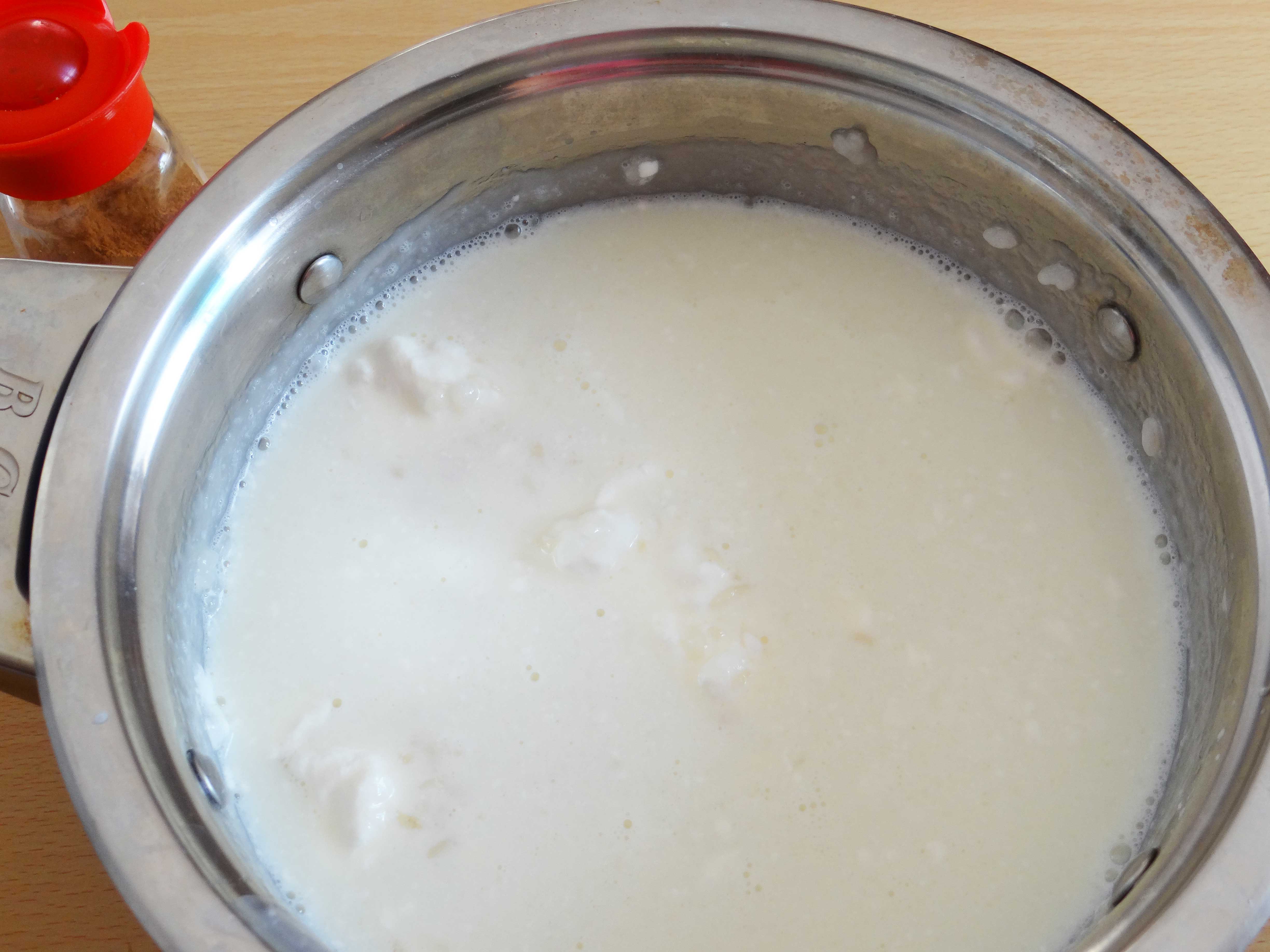 3. Punem laptele pe foc până începe să fiarbă.