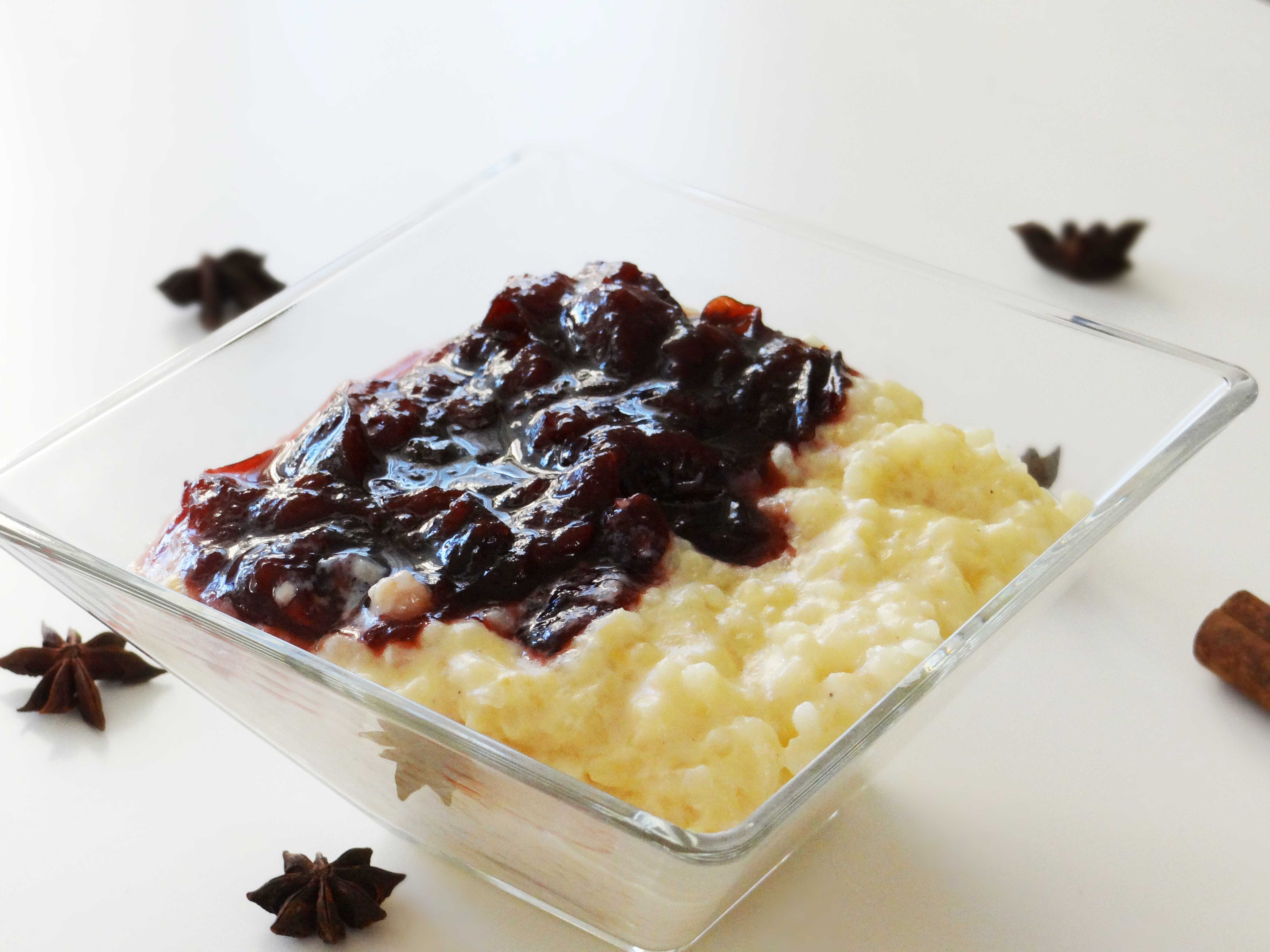 6. Introducem iar tava în cuptor și o ținem până când deasupra budincii se formează o peliculă maronie și laptele este absorbit de orez(în jur de o oră). Se servește cu dulceață.
