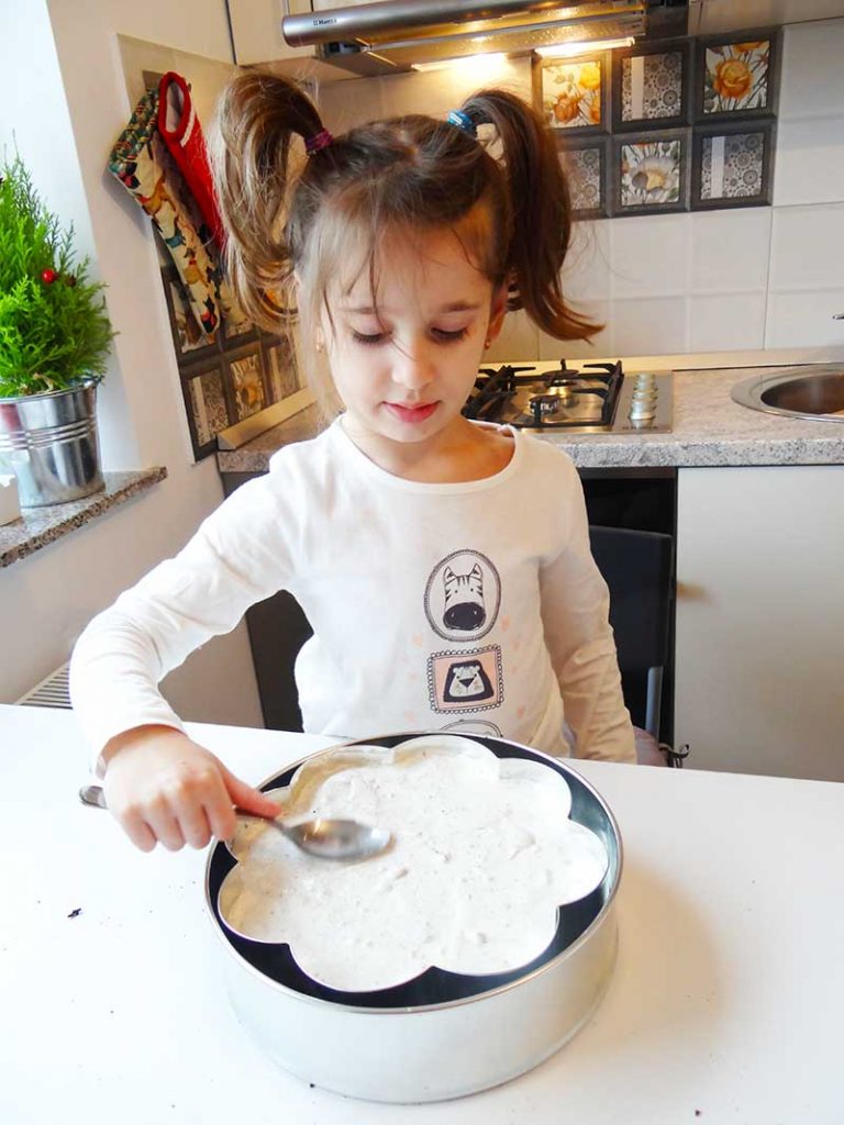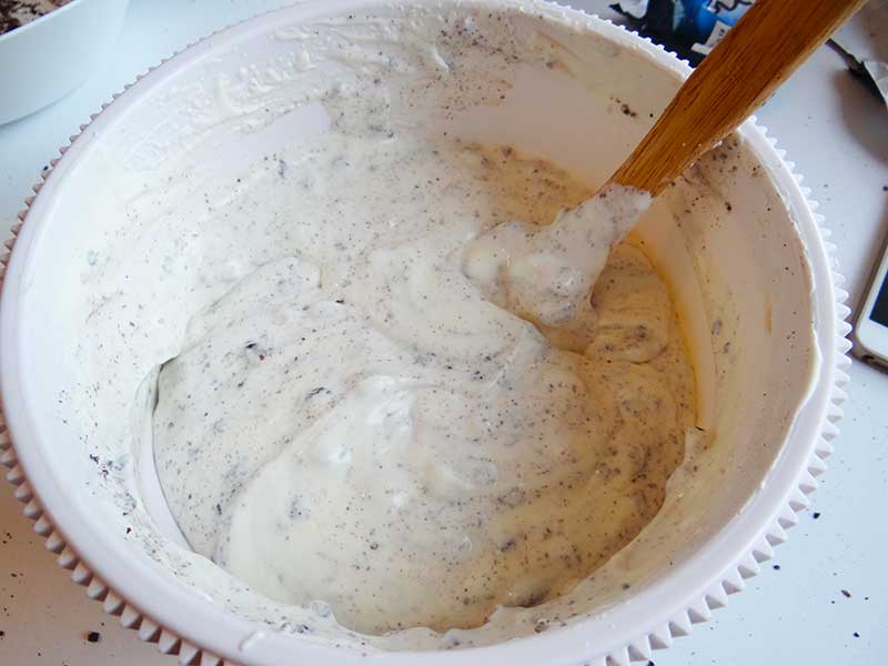 6. Adăugăm biscuiții și îi încorporăm ușor cu ajutorul unei linguri.