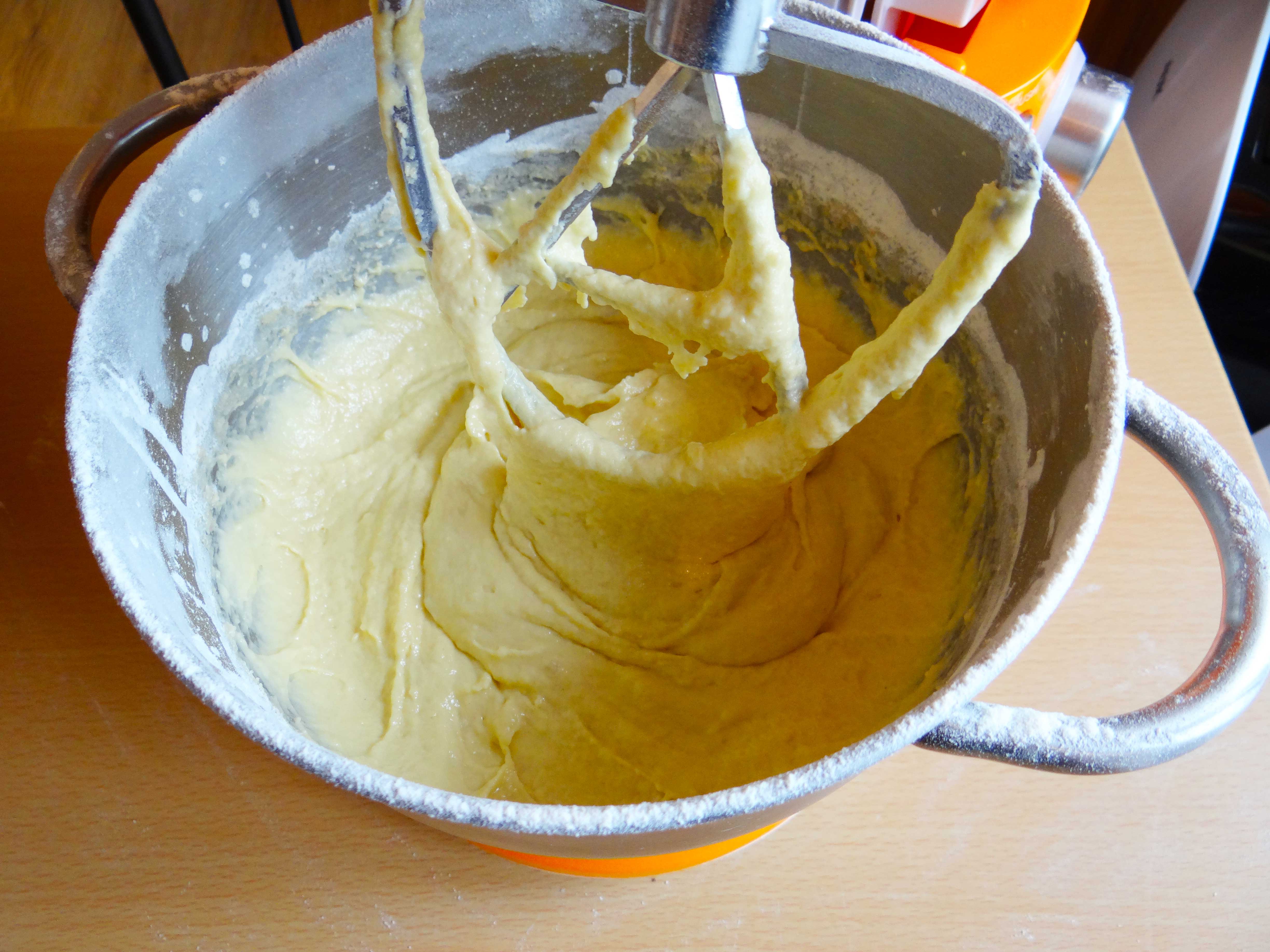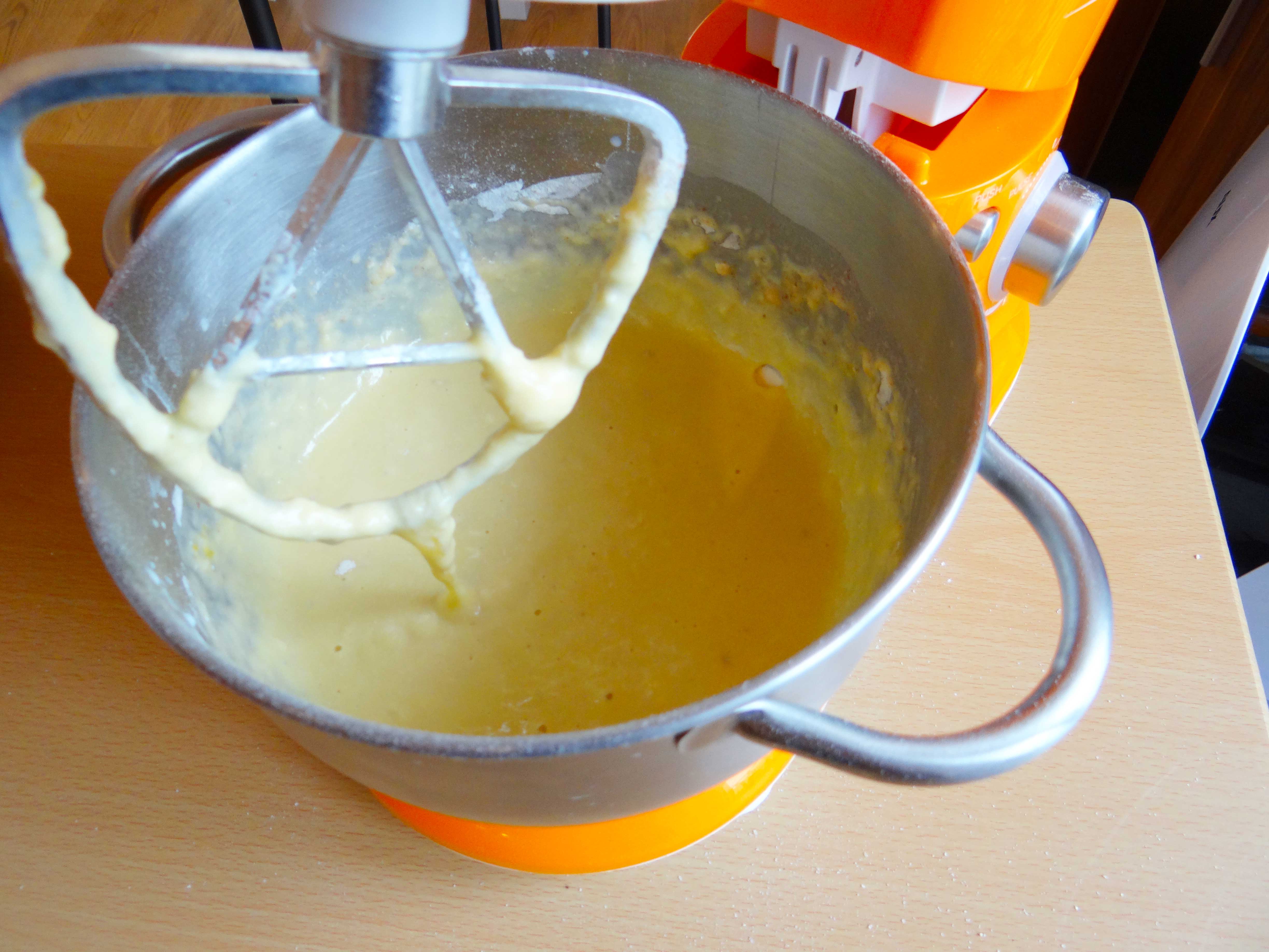 2. Montăm vasul in robot si mixăm la viteză medie un minut cu capătul rotund. Nu va speriați dacă untul nu se încorporează perfect.