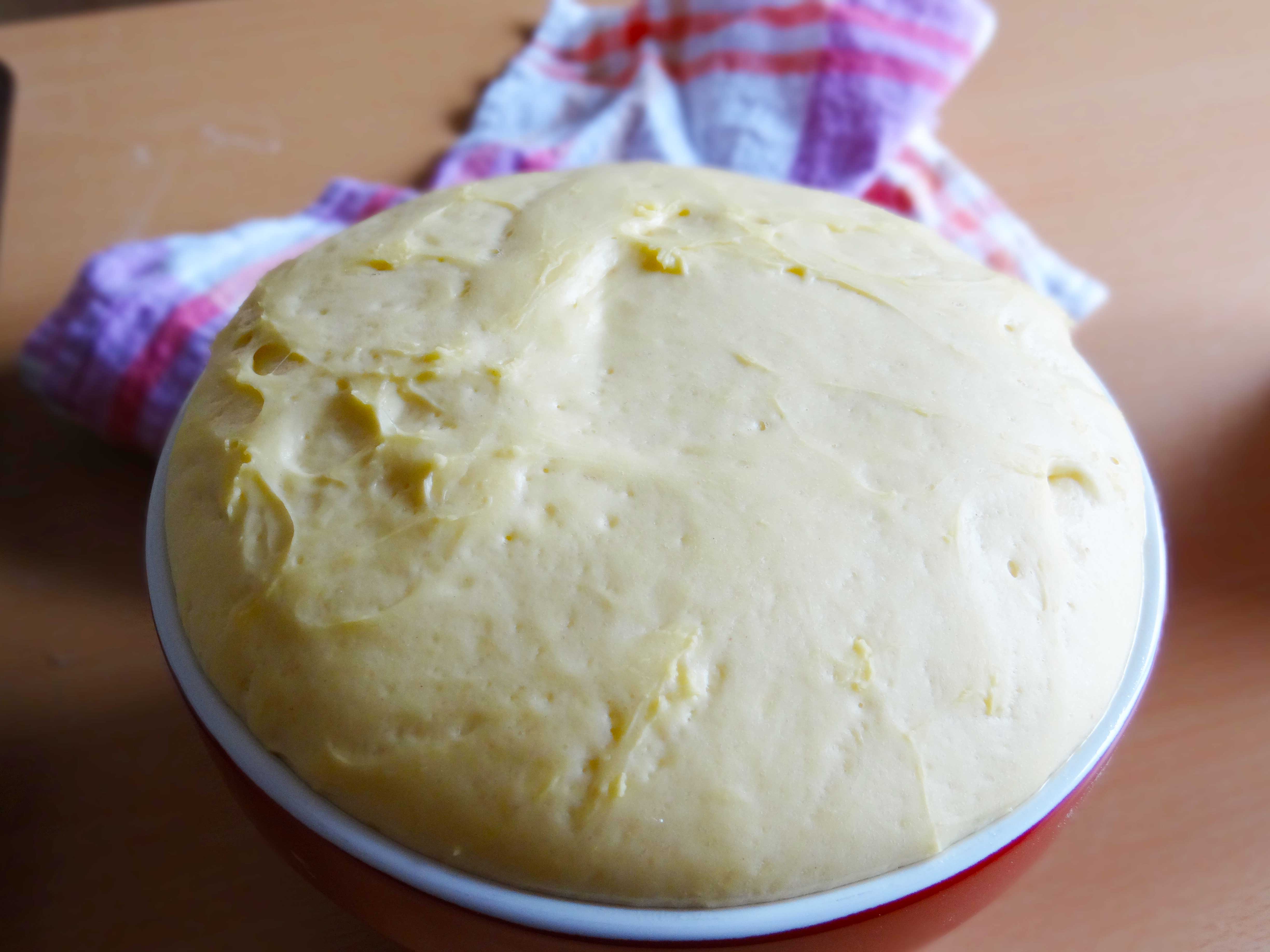 5. Punem aluatul int-un vas înalt pe care îl ungem cu ulei si apoi îl acoperim cu un șervet curat. Punem vasul intr-un loc caldut si il lasam la dospit o ora.