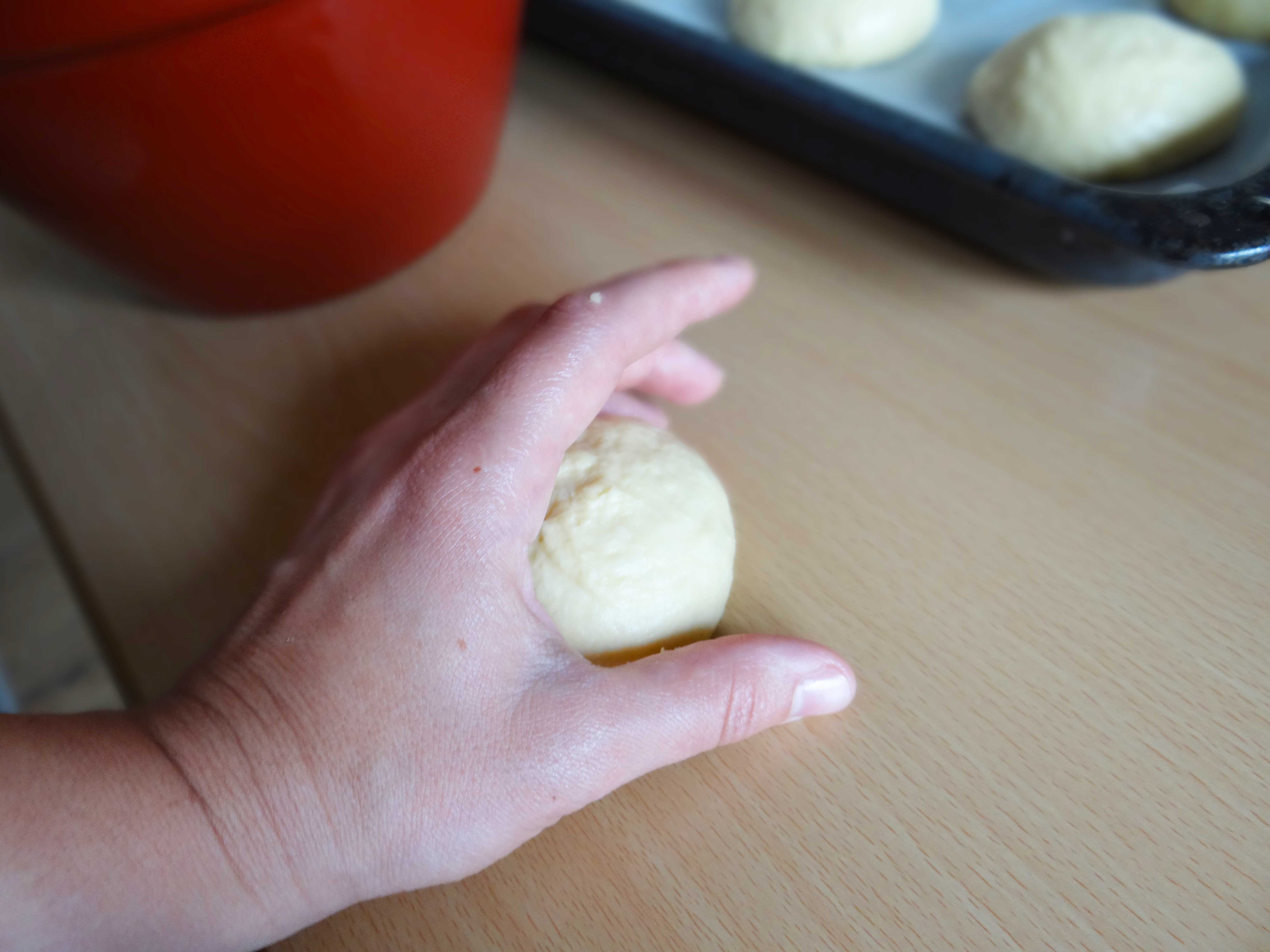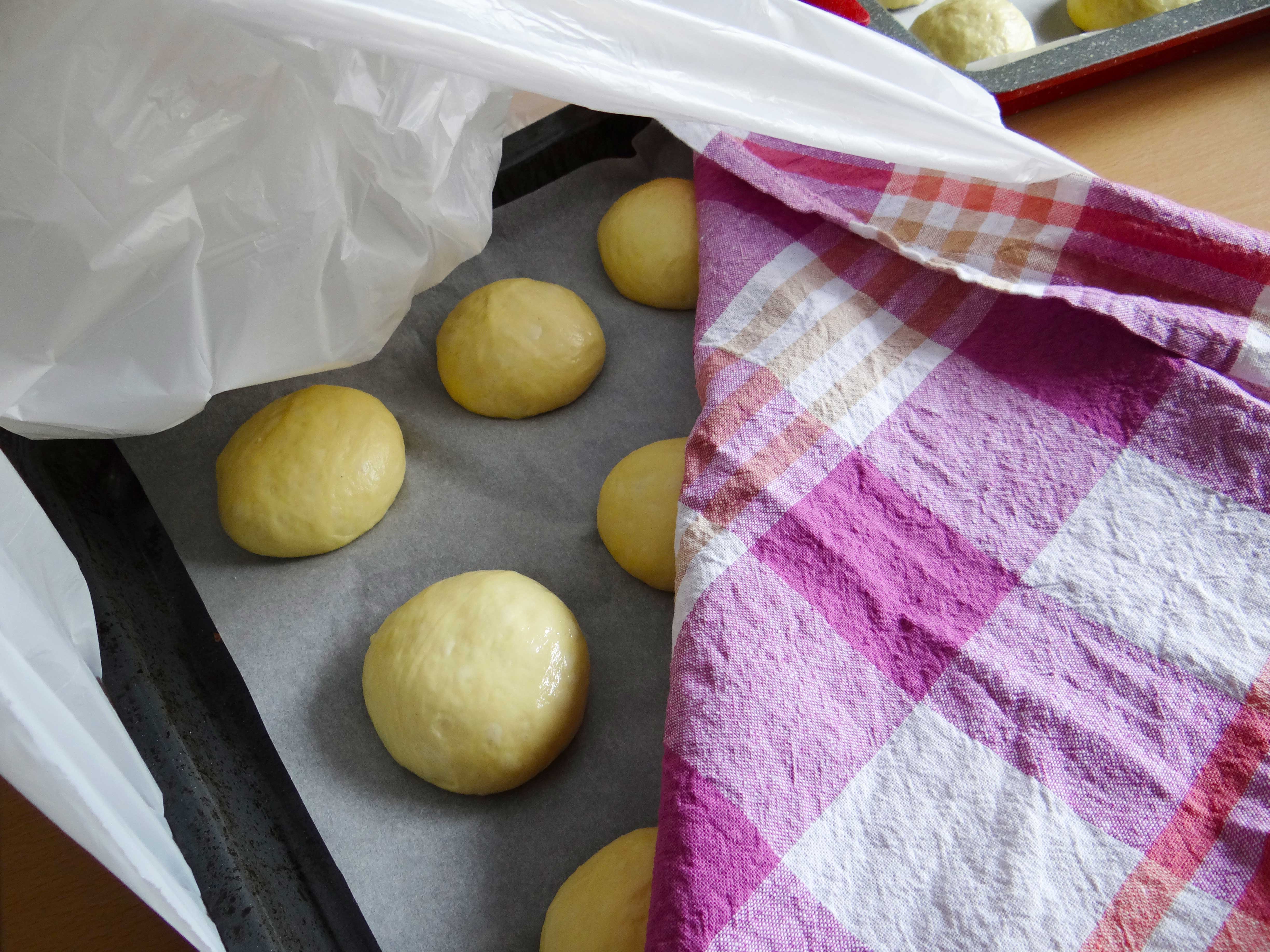 Acoperim tava cu un șervet curat si apoi o introducem într-o pungă mare. Lăsăm biluțele la dospit o oră.