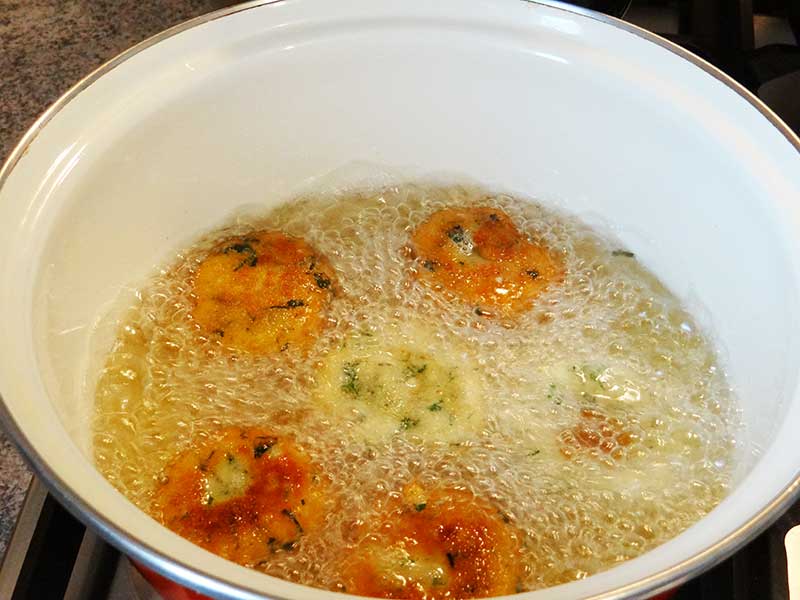 5. Prăjim chiftelele în ulei care trebuie să le acopere pe jumătate.