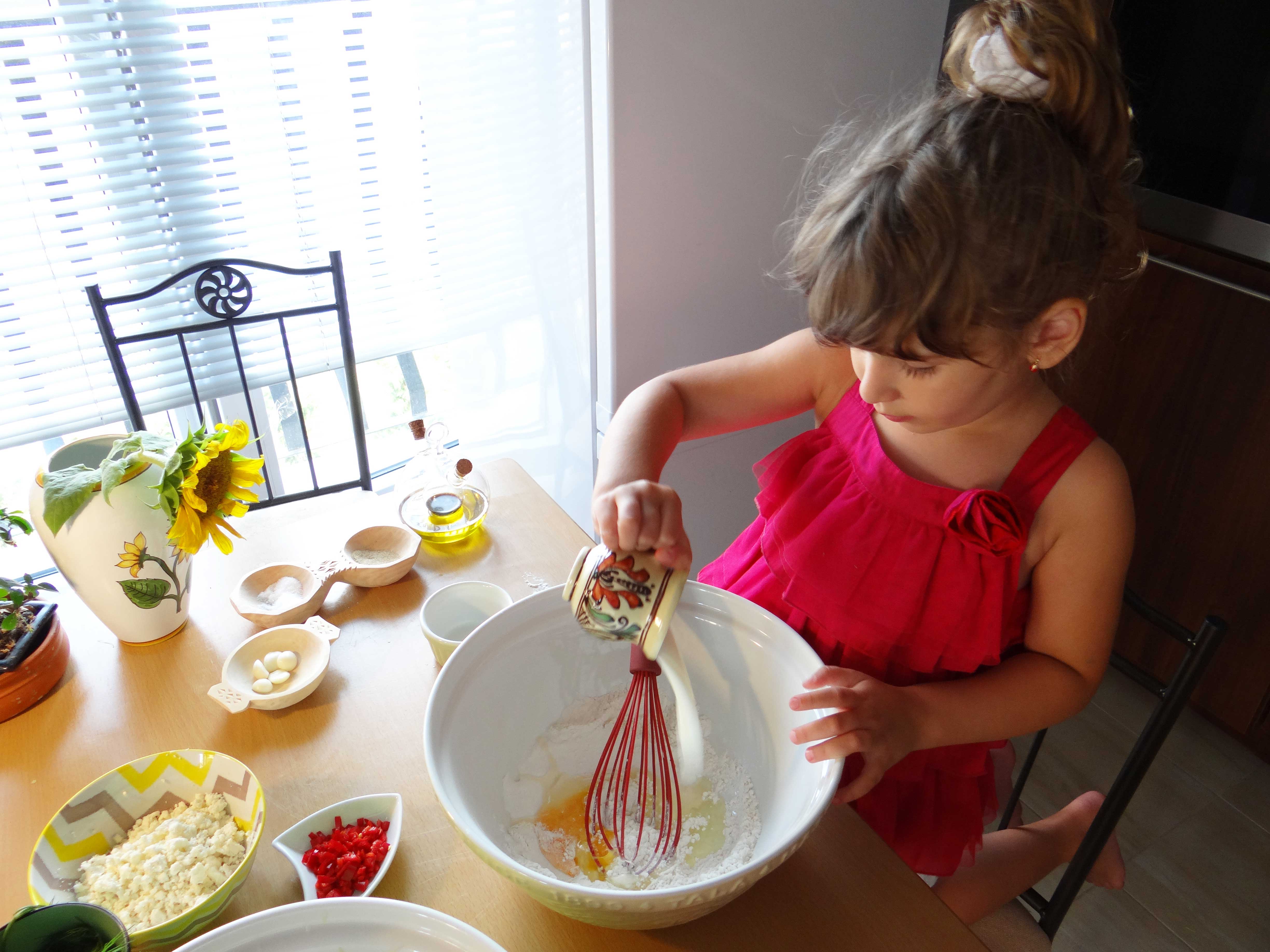 4. Adaugam oul, 0 lingura de ulei si laptele. Laptele il adaugam treptat pana cand amestecul nostru are o consistenta cremoasa.