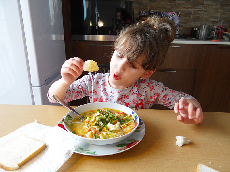 Asa arata ciorbita Mariei. Eu o fac mai concentrata pentru ca Maria nu mananca toata farfuria de ciorba si ma intereseaza sa manince mai multe legume decat zeama.