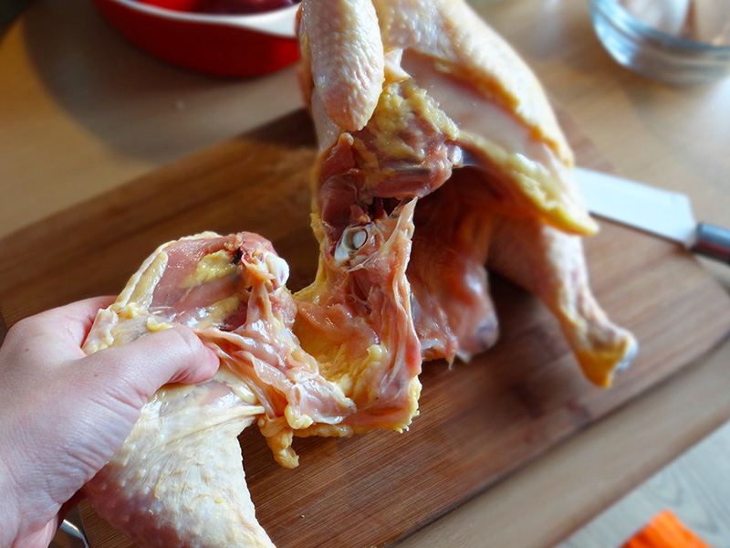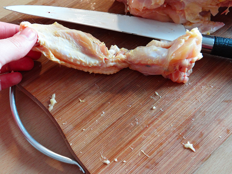 Apoi urmeaza aripiile, le taiem tot de la nivelul articulatiilor.