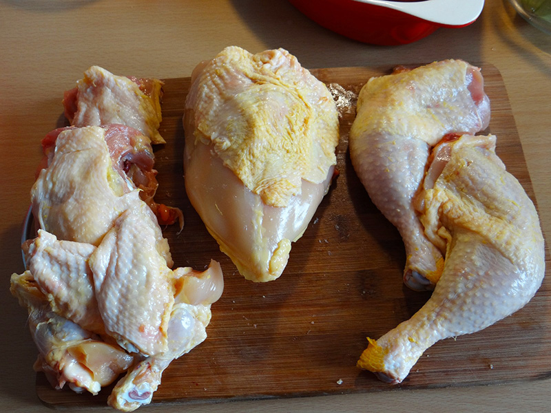 Spatele cu aripile merg in ciorba, din piept facem snitele si din pulpe pui in stil chinezesc.