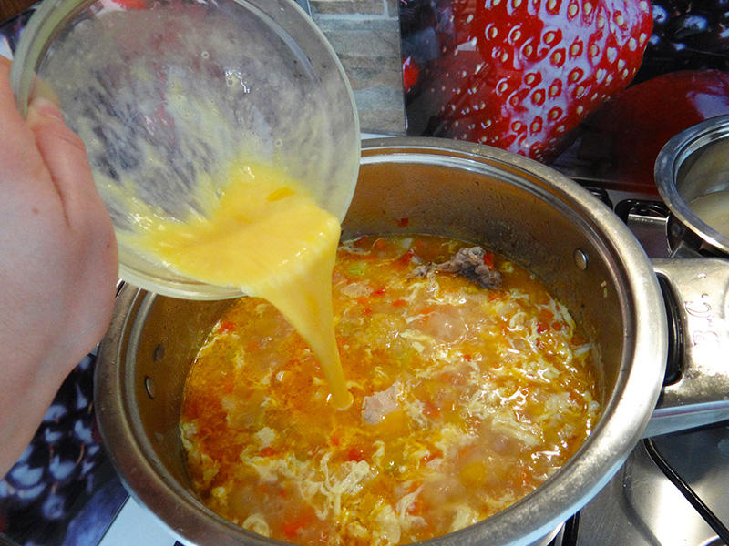 Apoi punem borsul si lasam sa fiarba pana da intr-un clocot. Eu am pus 250ml de bors.