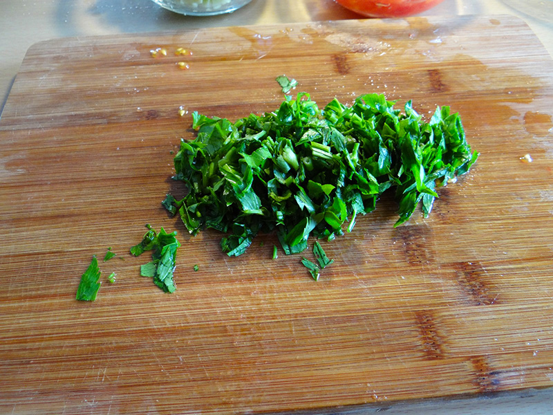 Acum oprim focul, mai punem sare daca este nevoie si adaugam leusteanul tocat.