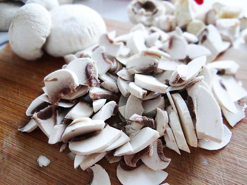 1. Curățăm ciupercile și le tăiem în felii subțiri.