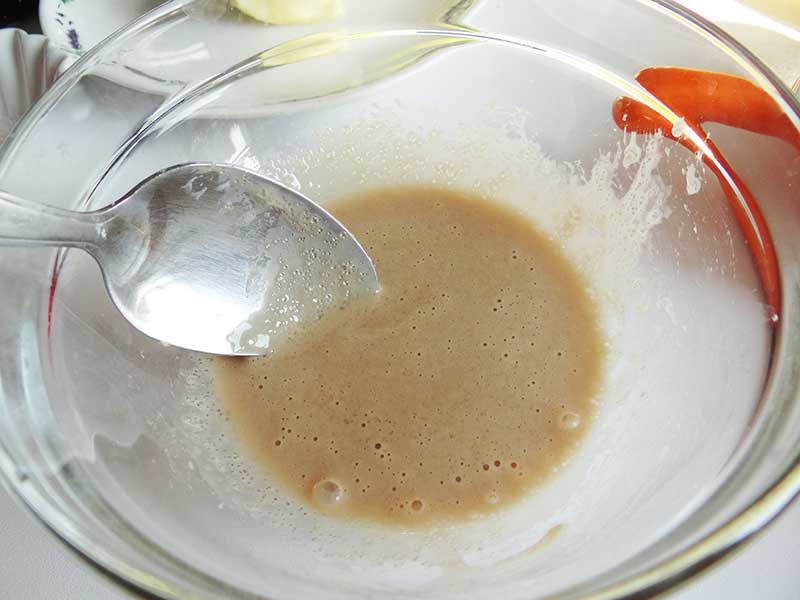 1. Dizolvăm drojdia în două linguri de zahăr după care o amestecăm cu laptele călduț.