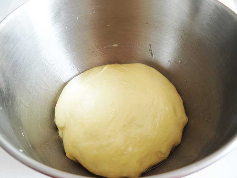 5. Așezăm aluatul într-un castron, uns cu ulei în prealabil. Acoperim castronul cu un șervet și îl punem într-un loc călduț. Aluatul nostru trebuie să stea la dospit 1-2 ore pentru a-și dubla volumul.