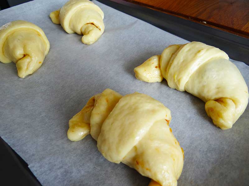 9. Cornurile astfel formate se lasă la dospit 30 de minute. Tot acum preâncălzim cuptorul la 180 grade C.