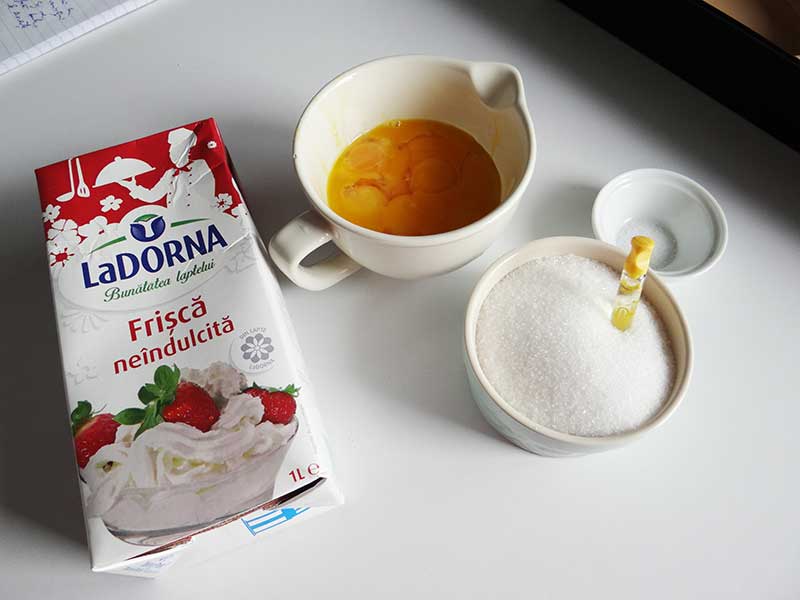 Dacă folosiți esență de vanilie o adăugați după ce ați luat smântâna de pe foc.