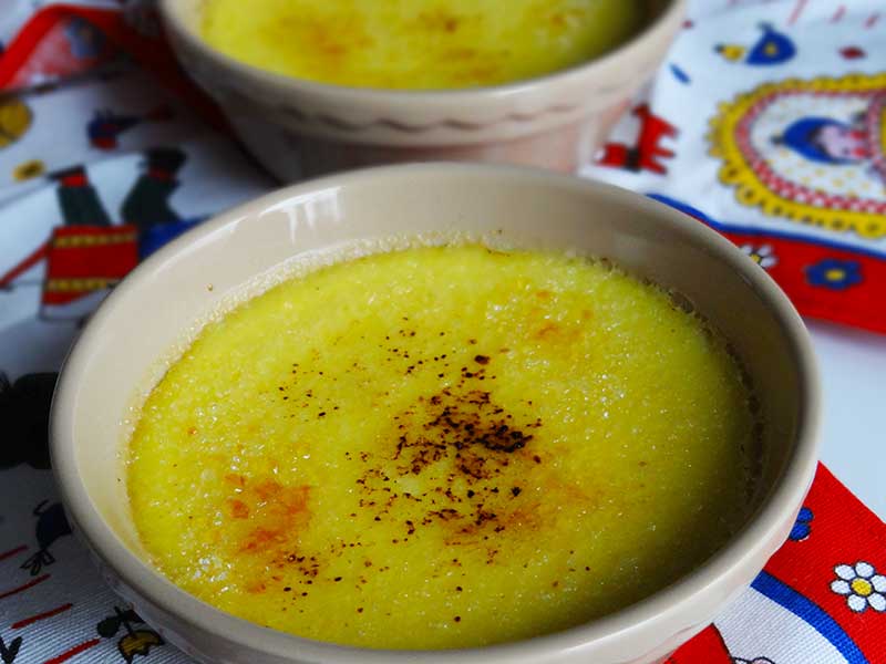 Crème Brûlée, după rețeta Juliei Child, este o cremă fină, rece, acoperită de un strat de zahăr caramelizat. Pentru a obține acea consistență mătăsoasă a cremei de ou este important ca temperatura cuptorului să fie reglată(să fie atât uniformă cât și delicată).