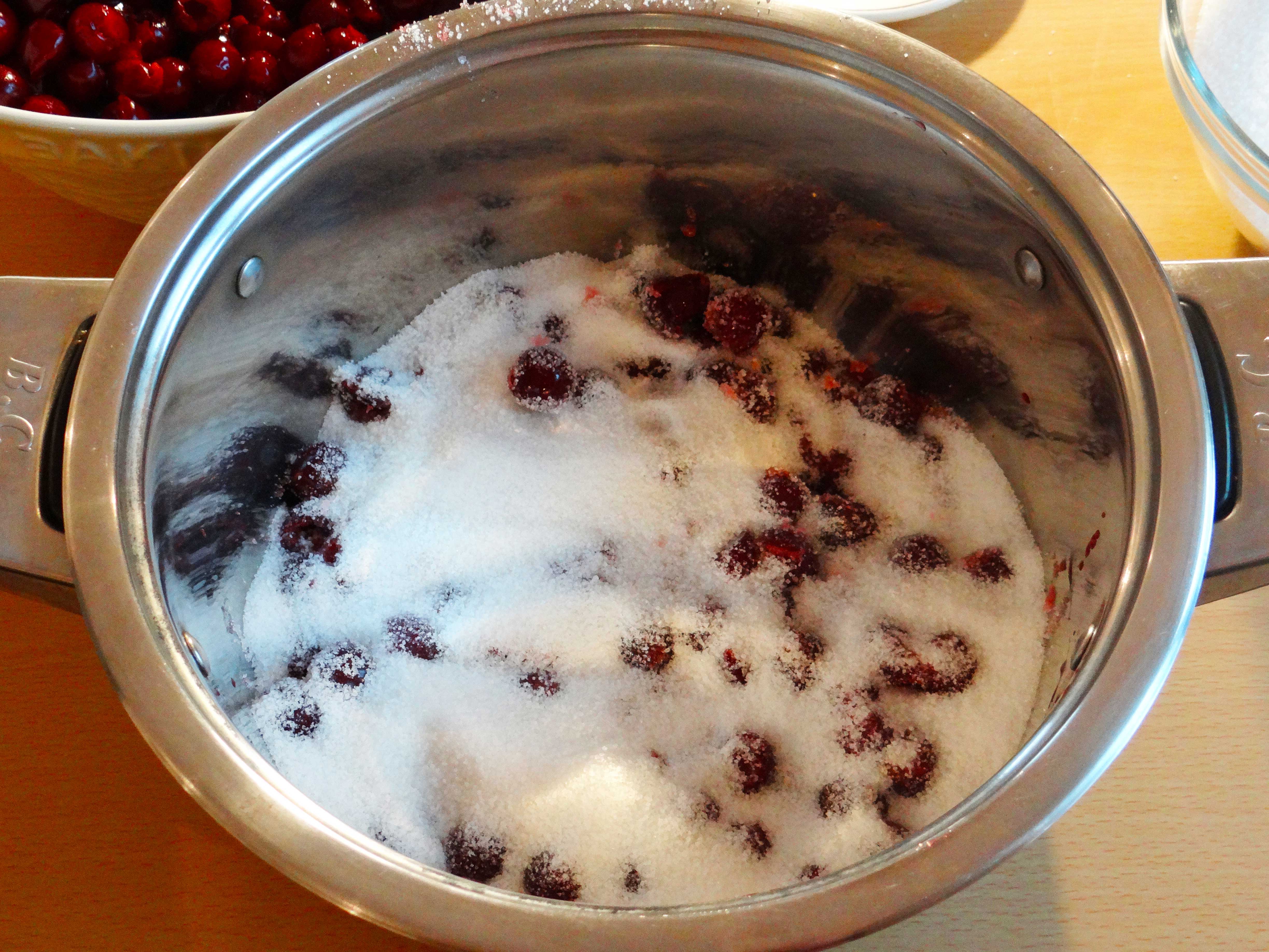 1. Intr-o oala incapatoare de inox cu fund dublu punem un strat de visine unul de zahar si tot asa pana terminam toate visinele. Ultimul strat trebuie sa fie de zahar.