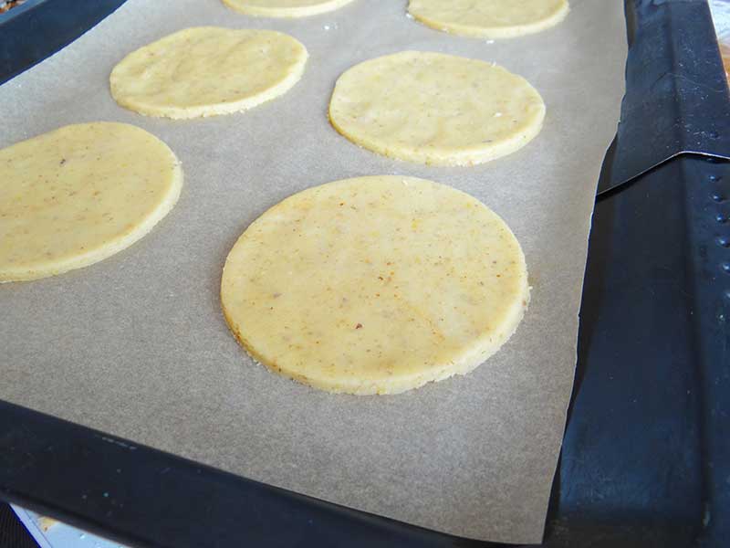 Aveți grijă cum ridicati cercurile de pe blatul de lucru, pentru a păstra forma perfect rotundă trebuie să vă ajutați de un cuțit subțire pe care îl introduceți sub aluat, ridicați ușor aluatul și apoi introduceți încă o dată cuțitul sub aluat după care ridicați.