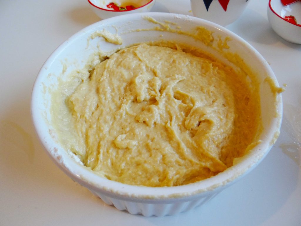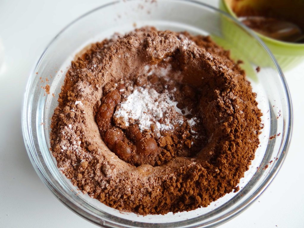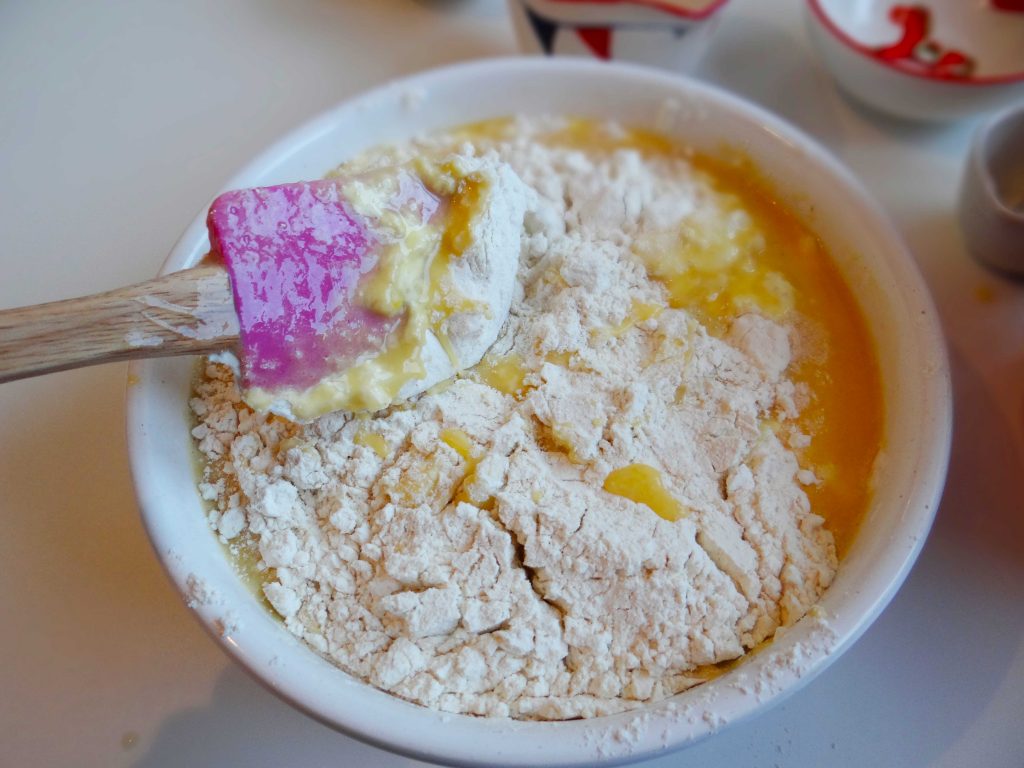 3. Adăugăm ingredientele lichide peste cele solide și amestecam totul cu o lingură(sau cu mâna).