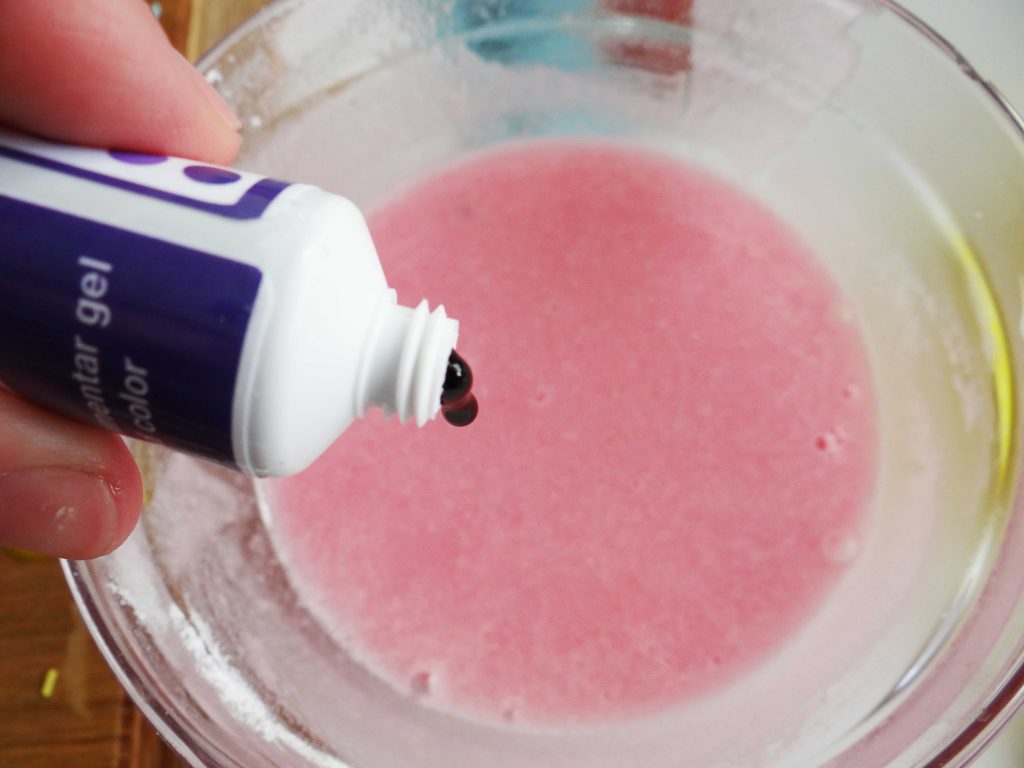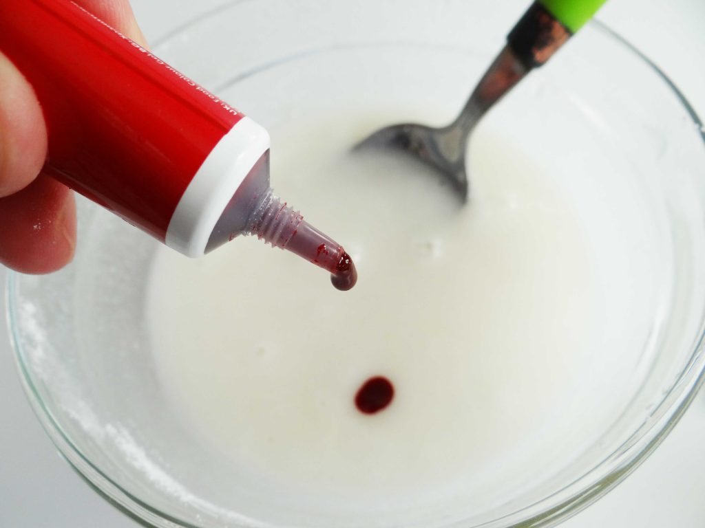 - 2-3 picături de colorant alimentar roșu