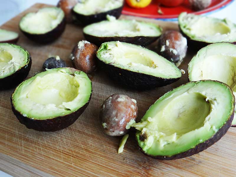 1. Tăiem avocado pe jumătate și îndepărtăm sâmburele.
