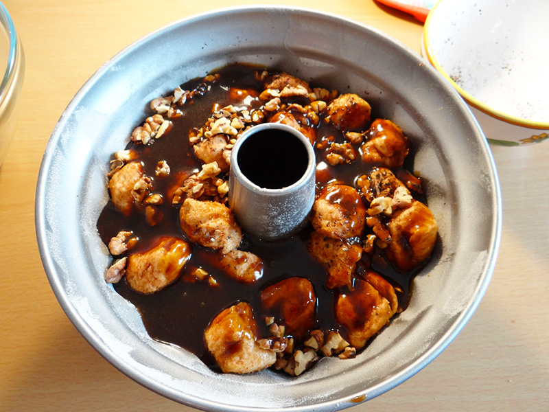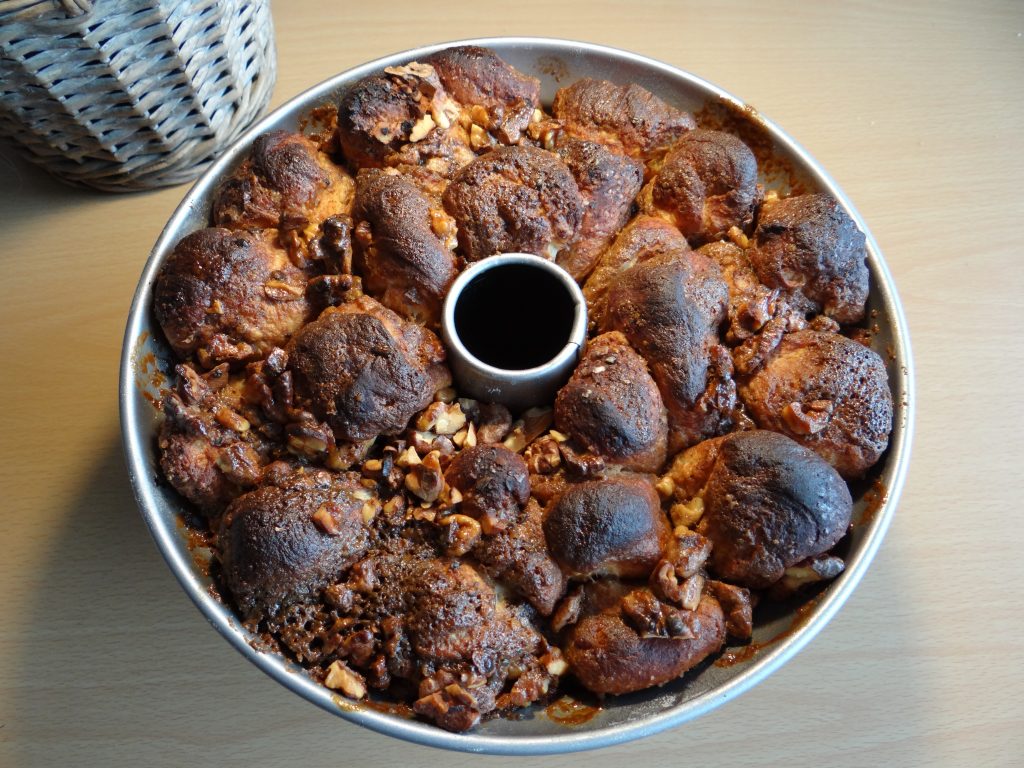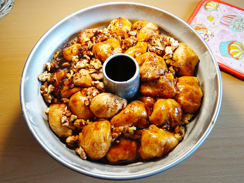 Este o prajitura moale, dulce, lipicioasa servita in Statele Unite la micul dejun. Consta in mici gogosele cu scortisoara, crema caramel si nuci prajite.