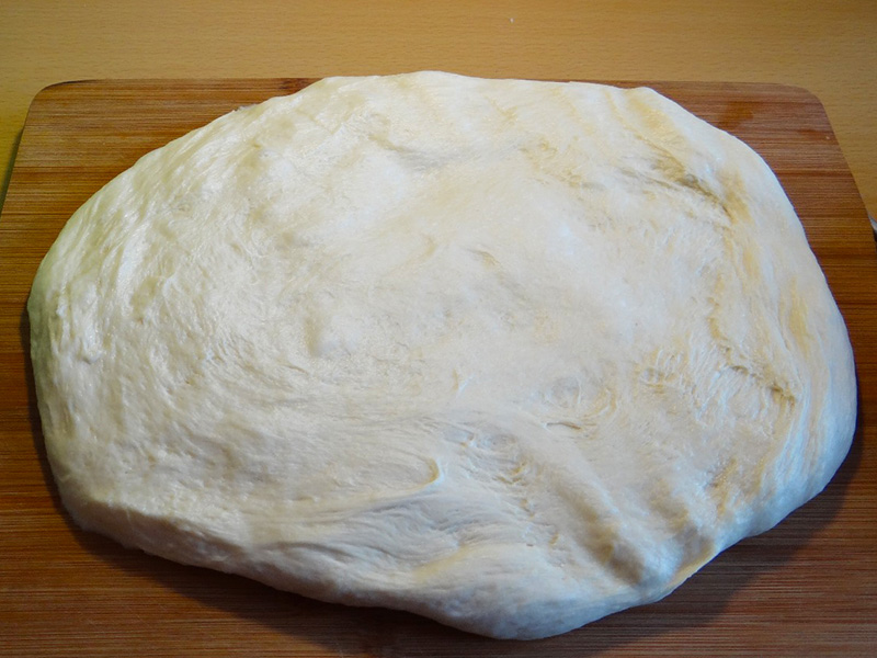Punem aluatul pe masa de lucru si il aplatizam pentru a indeparta aerul.
