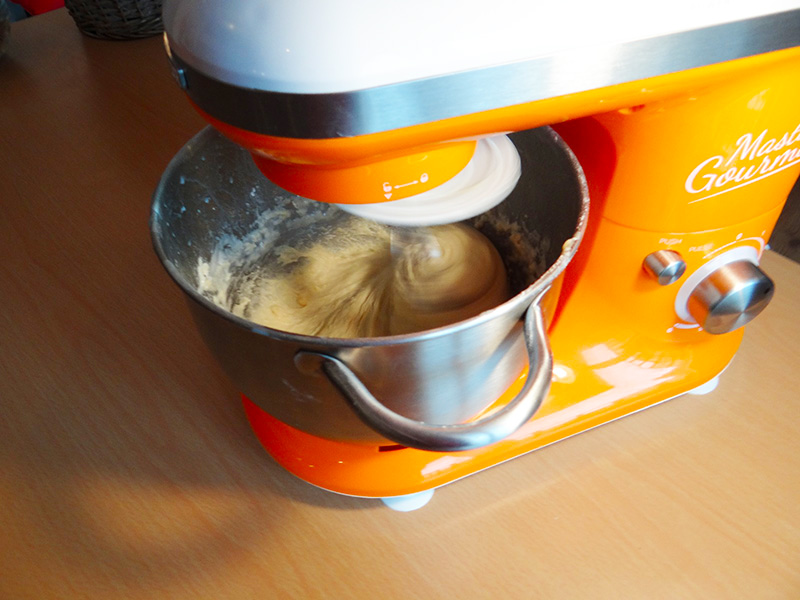 6. Acum lasam robotul sa-si faca treaba. Eu l-am lasat 8 minute pe viteza 1 si inca 2 minute pe viteza 2. In total 10 minute. Daca nu aveti robot framantati aluatul pana devine elastic