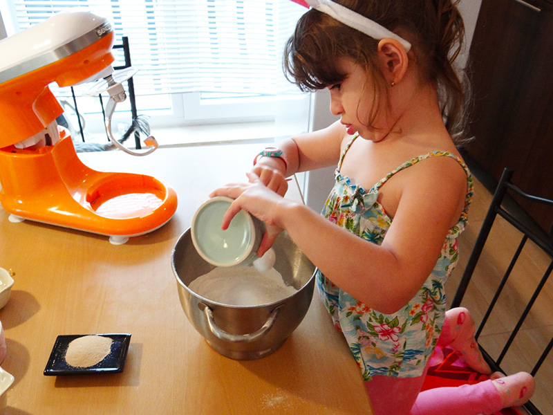 1. Cernem faina in vasul unui robot de bucatarie sau intr-un bol
