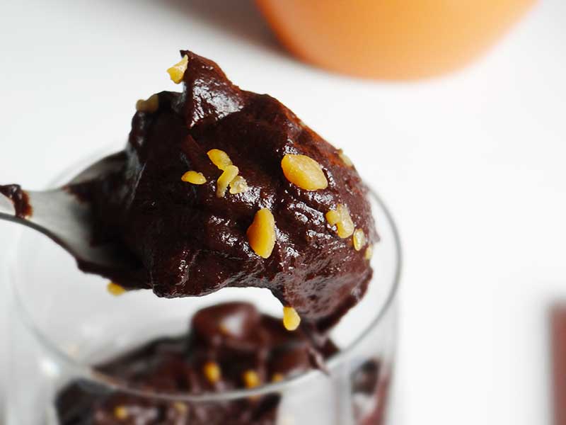 Acest mousse se servește în pahare mici și transparente.